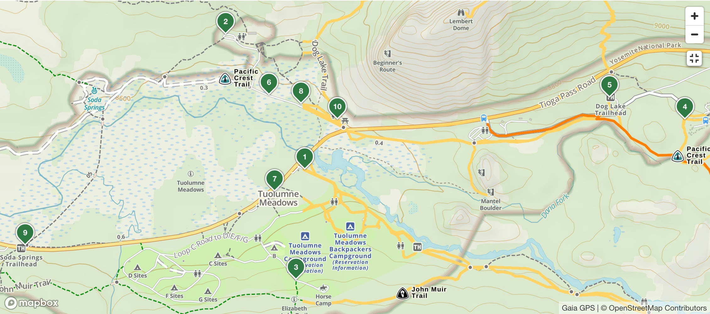 Most campgrounds within Yosemite open for reservations five months out—and can be gobbled up here seconds after they’re released. But select campgrounds, including Bridalveil Creek, Crane Flat, Tamarack Flat, and White Wolf, are released just two weeks in advance from July to mid-October. Bridalveil Creek campground has 110 sites about 45 minutes from Yosemite Valley and close to hiking trailheads along Glacier Point Road. At Crane Flat, you’ll find 151 sites near giant sequoias, while 52-site Tamarack Flat and 74-site White Wolf are located along Tioga Road, with closer access to climbing and hiking in the Tuolumne Meadows area, which you can explore on this Gaia GPS map.