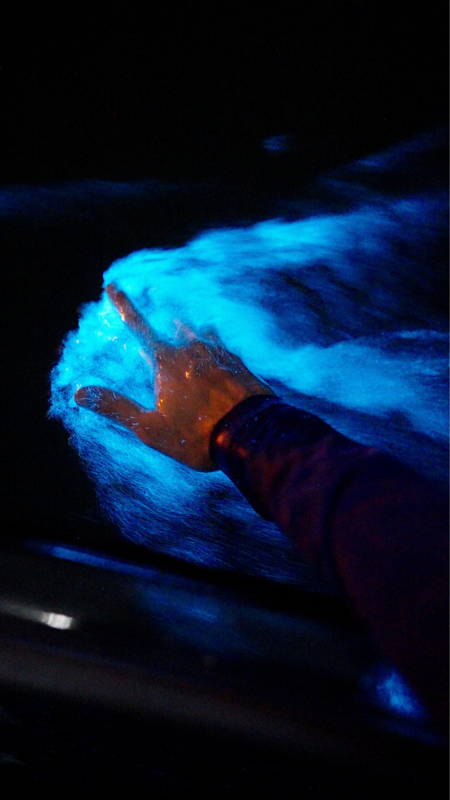 “It’s alien, but not in a scary sense. It doesn’t feel like it belongs on this planet,” says traveler Jacob Berkowitz, who kayaked the bay multiple times between 2022 and 2024 during work trips to Puerto Rico. “You could put your hand in the water and see the effect instantaneously… Even following somebody’s stream, just the flow of the color, it feels like something out of a James Cameron movie, very Avatar-like.”