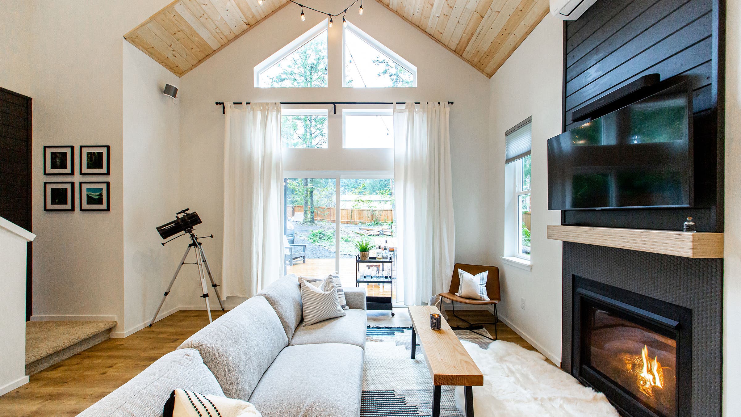 Also near the Stevens Canyon is this new two-bedroom, creekside cabin (from $330) on two acres of land near Packwood. The open-concept, sleekly-designed cabin sleeps up to five and has a hot tub, fire pit, and electric vehicle charging station out front. It comes with coffee supplies and spare toothbrushes, in case you forgot yours.