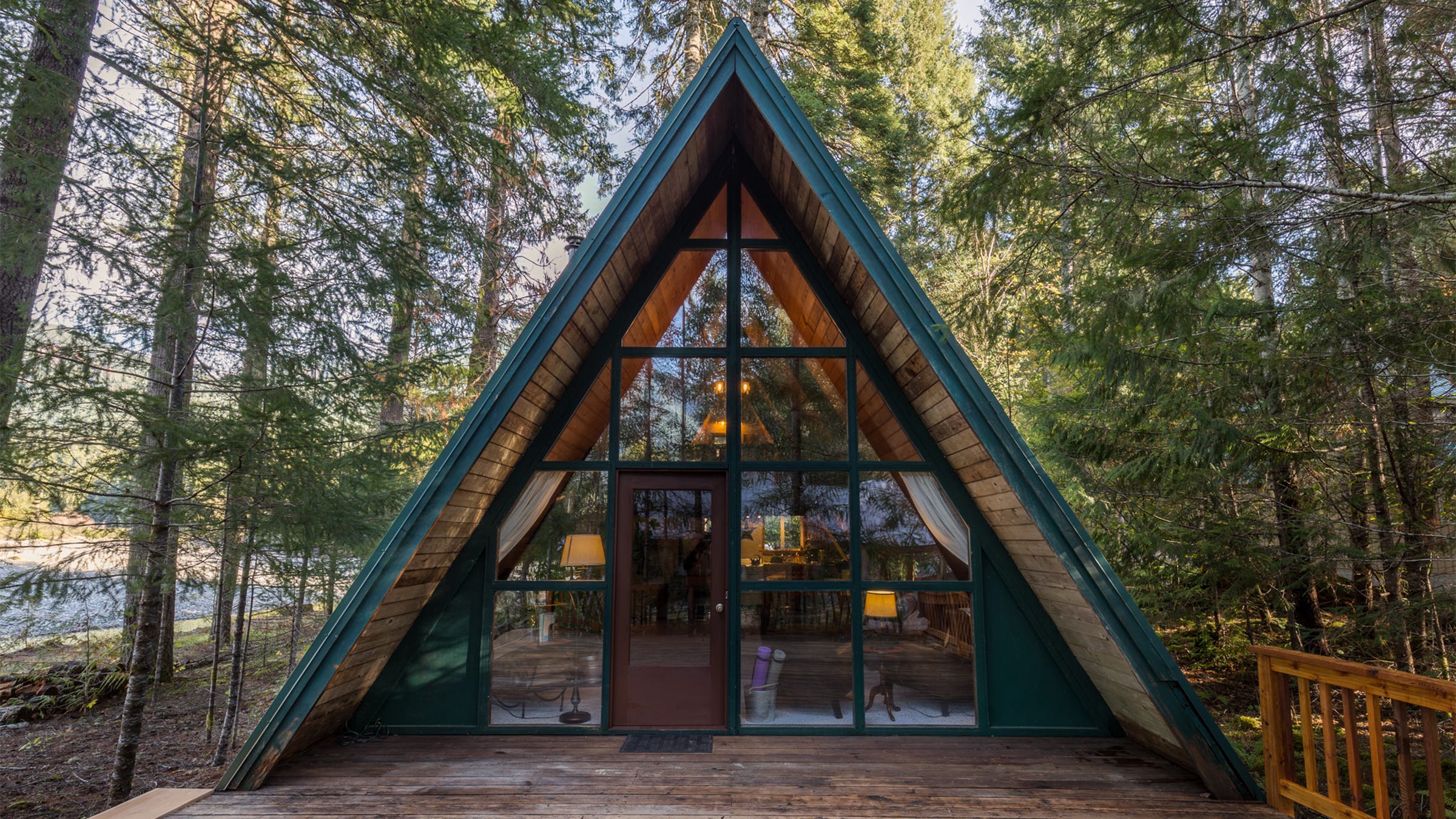 Want more A-frames? This charming 1960s-era A-frame (from $308) is right alongside the Cowlitz River and allows dogs. Your Airbnb host is a chef and furniture builder named Cedar, so the kitchen is supplied with everything you need and many of the furnishings are handmade and unique.