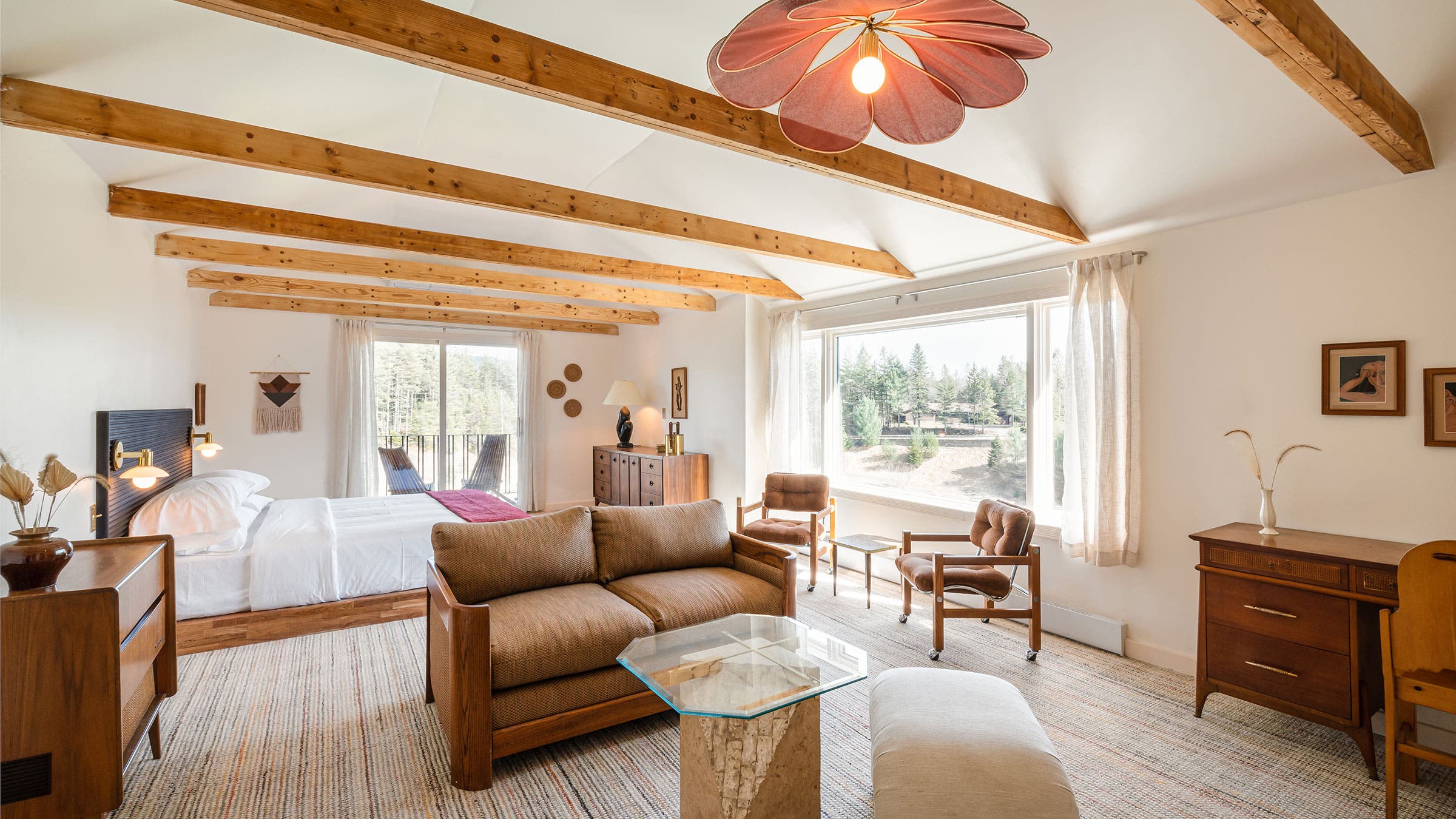 The 51-room Tälta Lodge Bluebird (from $182) opened on the banks of Little River, a short drive from skiing at Stowe, in October 2021. Tälta is Swedish for camp and this boutique lodge has distinct adventure-base-camp vibes: thoughtful gear storage spaces, boot-drying rooms, an indoor pool and sauna, and outdoor fire pits. Pet-friendly rooms come with easy access to grassy outdoor areas, while other rooms offer private patios or decks. Bluebird Hunter Lodge (from $197), a hotel by the same hotel group, opened this summer in New York’s Hudson Valley, minutes from skiing at Hunter Mountain.