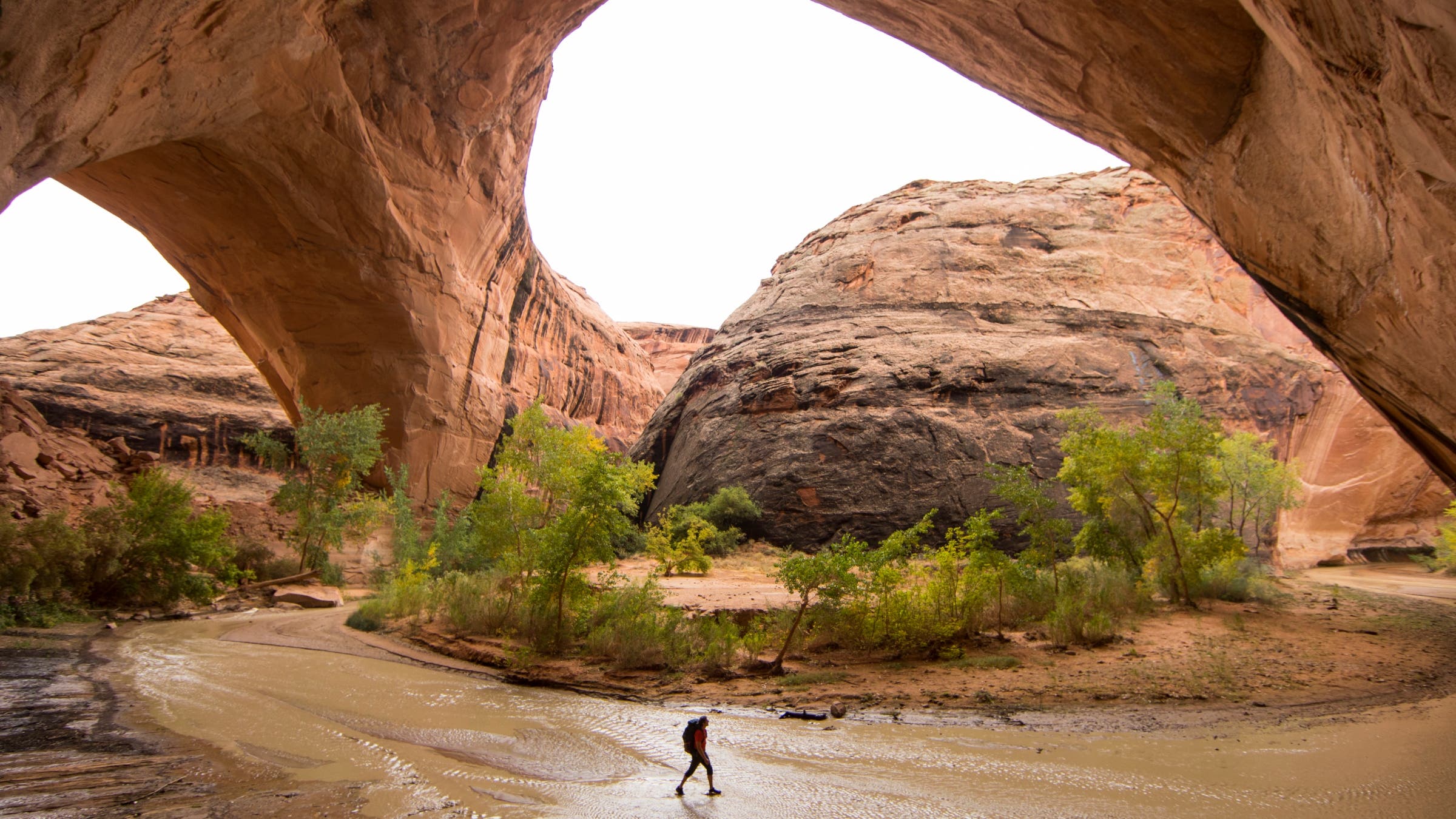 Hiking under arches in Escalante, Utah (Photo: Jordan Siemens/Getty)