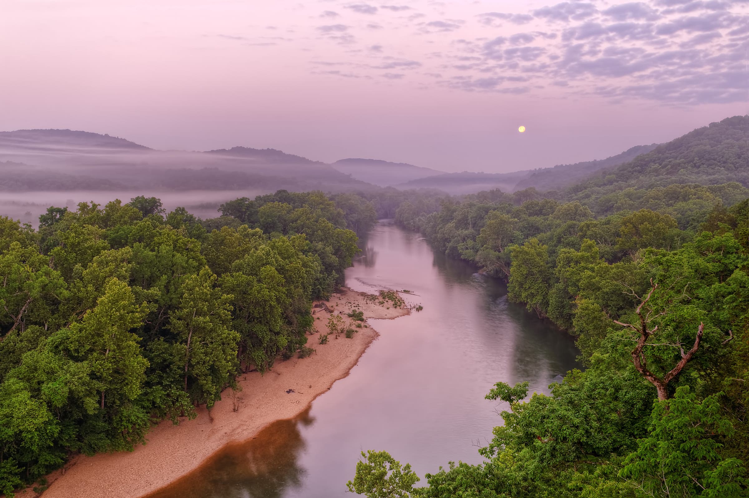 Heading west, you have two parallel options to drive: sections of historic roadway or the faster I-44. Either way, the next adventurous detour is south into the Ozarks, a lesser-known region of rugged limestone hills that hides many great trails and spring-fed rivers.