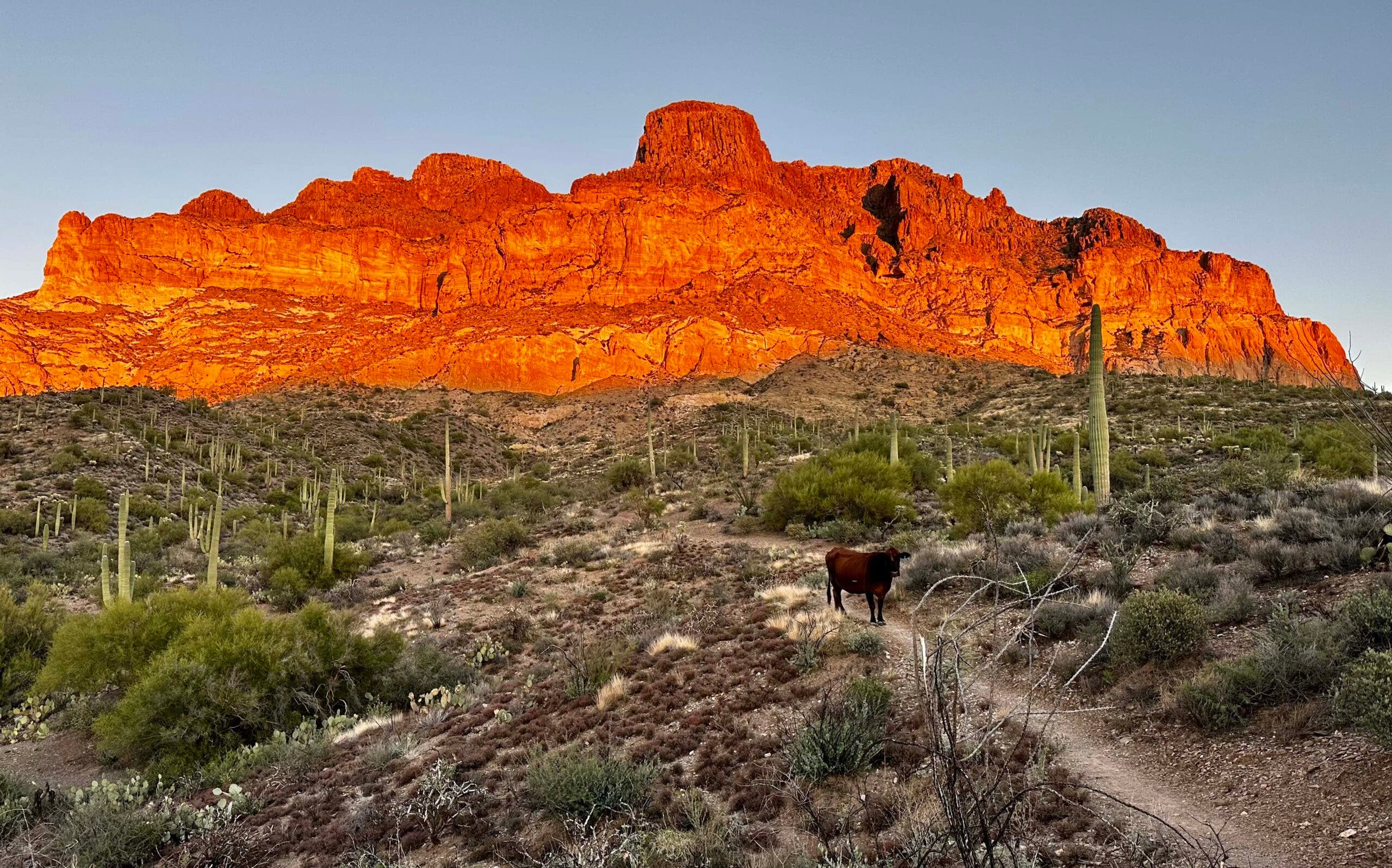 I was prepared for fortresses of red rock and impressionistic seas of interweaving green and brown, the colors respectively associated with southern and northern Arizona. But I don’t know that I expected the shimmer of the fragile yellow leaves of quaking aspen copses above the Grand Canyon’s North Rim (alone, a reason to hike this trail in the fall rather than spring) or the rush of red, purple, and yellow wildflowers in the desert hundreds of miles to the south. And then there are the colors of the horizon, broadening like the spectrum of a fire by morning and fading into a lysergic wash by night. When the sun is gone, the nocturnal Arizona sky is one of the country’s best, even when you’re close to major cities like Phoenix or Tucson. Only occasional clouds crowd out the Milky Way or the full moon’s light, nearly inescapable in the desert. Try to spend your nights cowboy camping, and you won’t miss television for a minute.