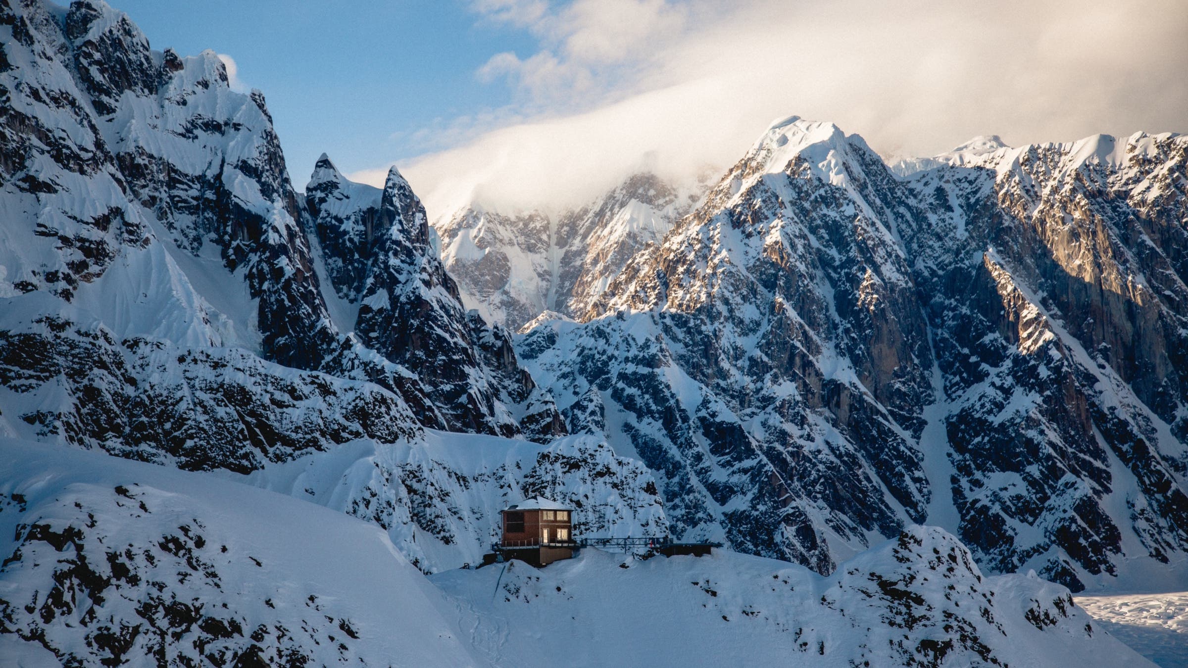 It’s just you and miles of snow, ice, and starry skies at Sheldon Chalet, an intimate, fly-in lodge perched on a razor-sharp ridge in the middle of Ruth Glacier in Denali National Park. The nearest town is 50 miles away, and there’s no cell service, WiFi, or TV, only limitless views of snow-encrusted Denali and the white expanse of the glacier outside your window. With only five bedrooms in the chalet, you’ll feel like you have this pristine wilderness to yourself.