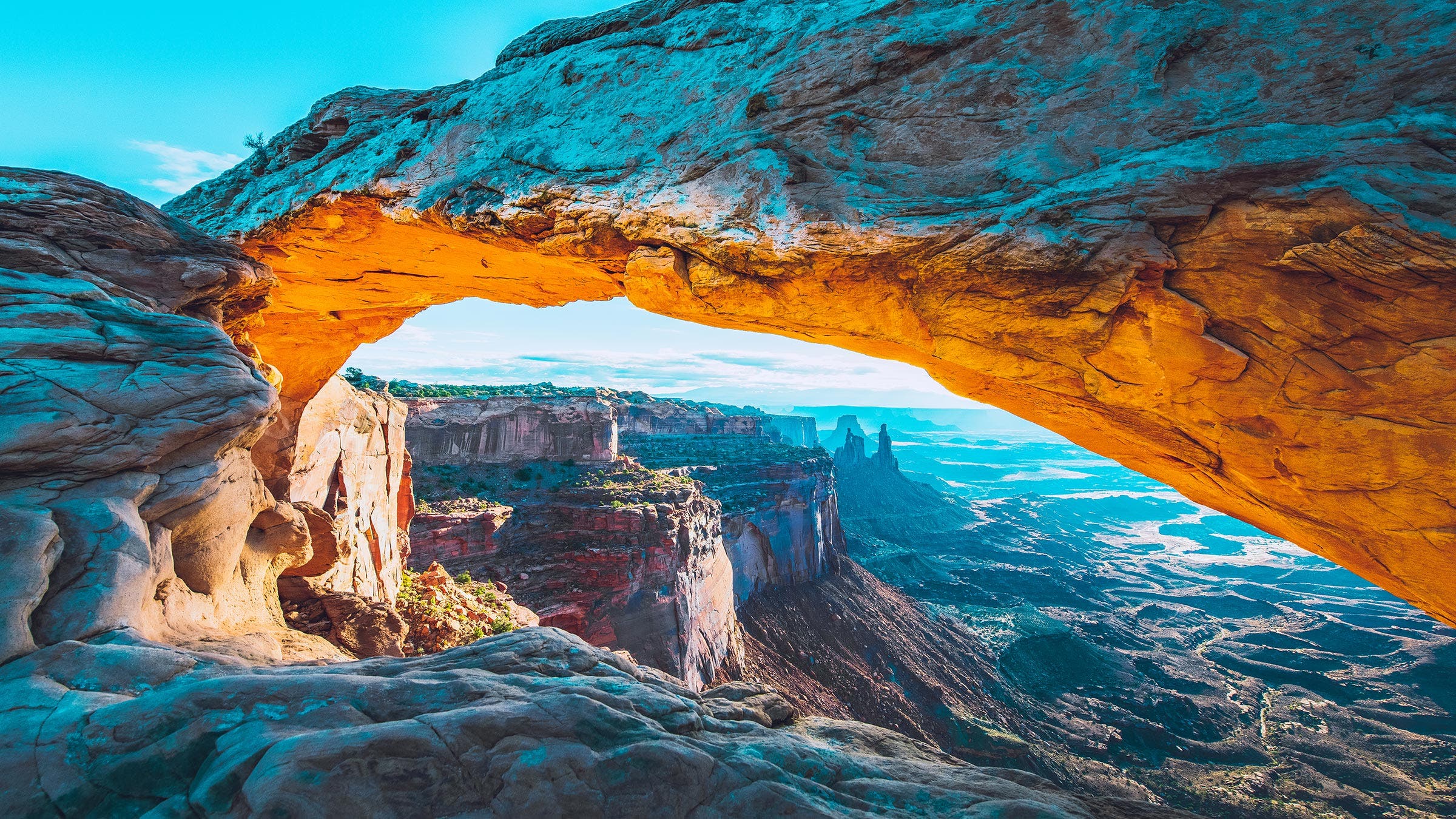 I know, all the great sandstone arches are across the street in Arches National Park, right? Wrong. The 258,000-acre Canyonlands has plenty of fascinating sandstone features throughout, and while Mesa Arch isn’t the largest natural bridge in the region (it’s 27 feet across), it’s perched on the edge of a cliff, 1,200 feet above Buck Canyon. As a result, the natural bridge provides the perfect frame for peering into (and photographing) the belly of Canyonlands.