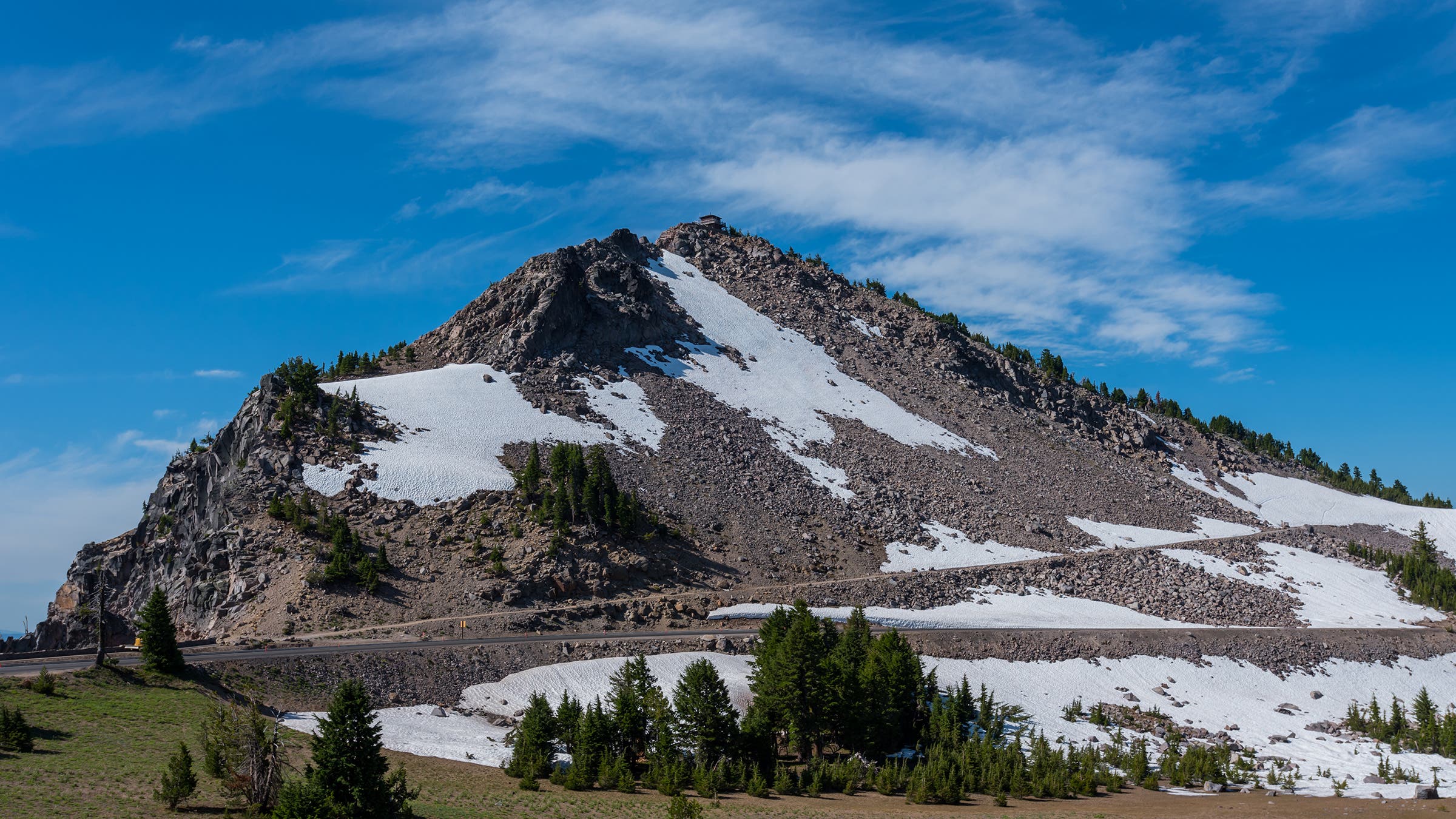 Logistics: You’ll have to pay an entrance fee of $30 per vehicle. As of early summer 2023, portions of Rim Drive are still closed for snowplowing. The road is usually cleared by mid-July. Keep an eye on road conditions here.