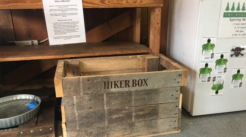 Around long distance trails, it’s not uncommon to find a collection of small containers—hiker boxes—at outfitters, hostels, and other spots frequented by hikers. The boxes will fill with extra food items, left over from hikers’ resupplies—medical supplies, toiletries, and even small pieces of camping equipment—all for passing travelers to take and replace as needed.