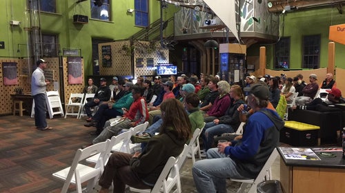“We don’t create events around selling a bunch of tents,” Dakan said. “We create them about a community need.” He aims for a mix: one month might feature a slideshow about development threats at the Grand Canyon, while another is all about a ski movie “just to get the stoke going.” A typical event brings in 50 to 100 people.