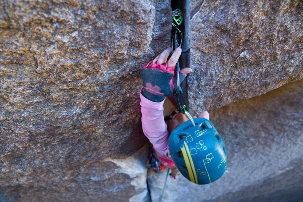David recalls initially brushing off his daughter’s bold request. But then Reagan waltzed over to the route, climbed up a bit and plugged a cam into the crack. David took a look: It was bomber.