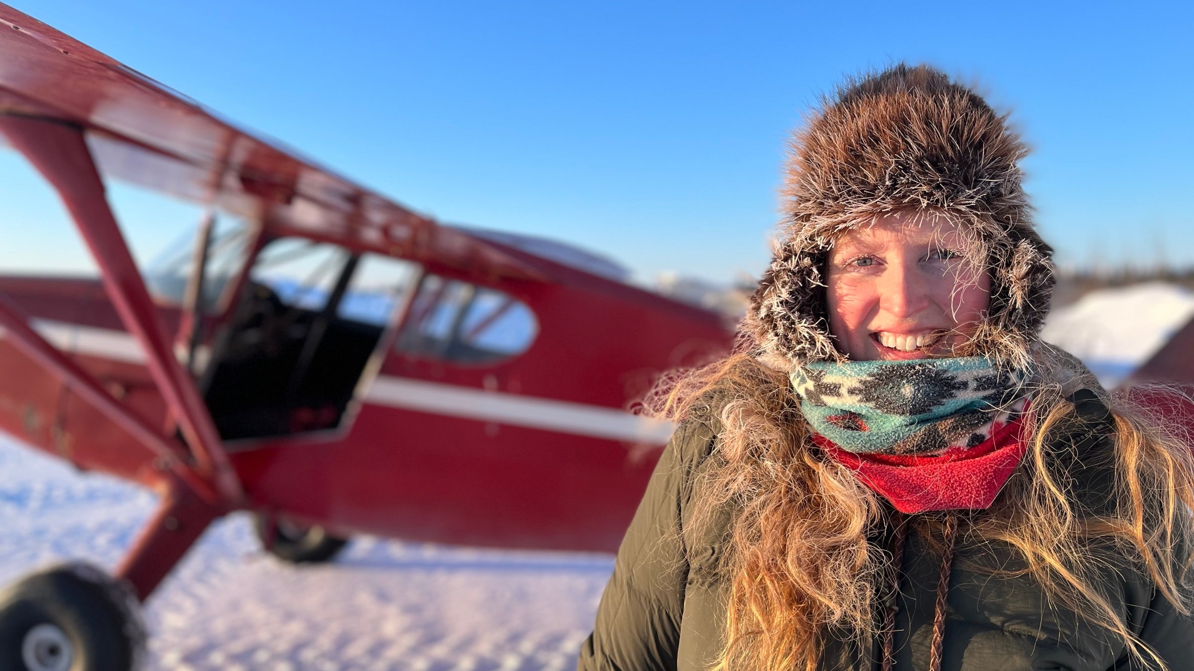 So I went up there with the family and I got to fly my plane. I bought a little airplane, a 1946 Stinson Voyager named Ruby. She’s red. She’s got a wooden prop. She’s like an extension of my being. I love this airplane. I sit in this airplane and just feel like, Oh, like this is me. This is my safe place, my happy place, this little airplane. And we have been through so much together at this point. We’ve flown across the whole state of Alaska together.