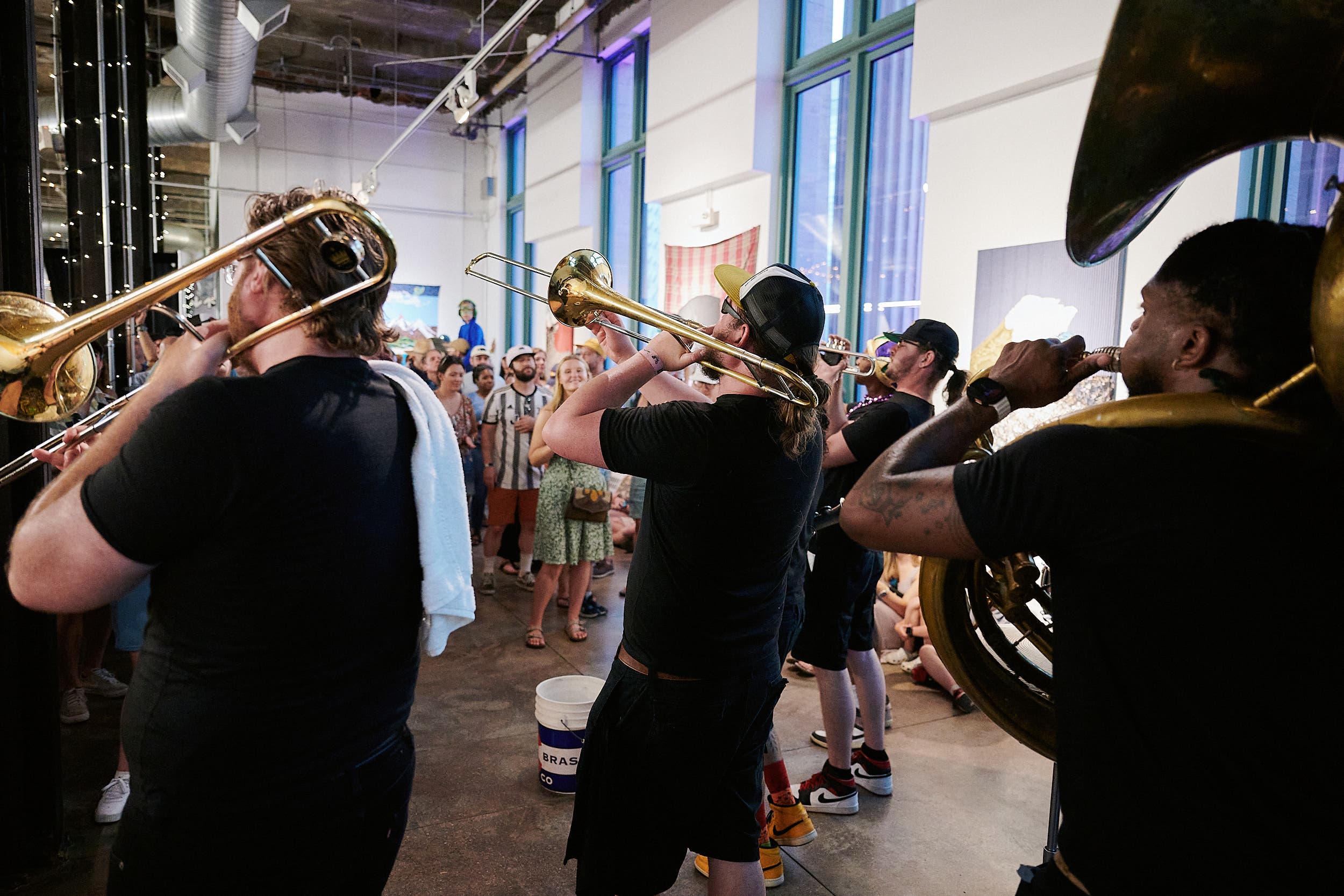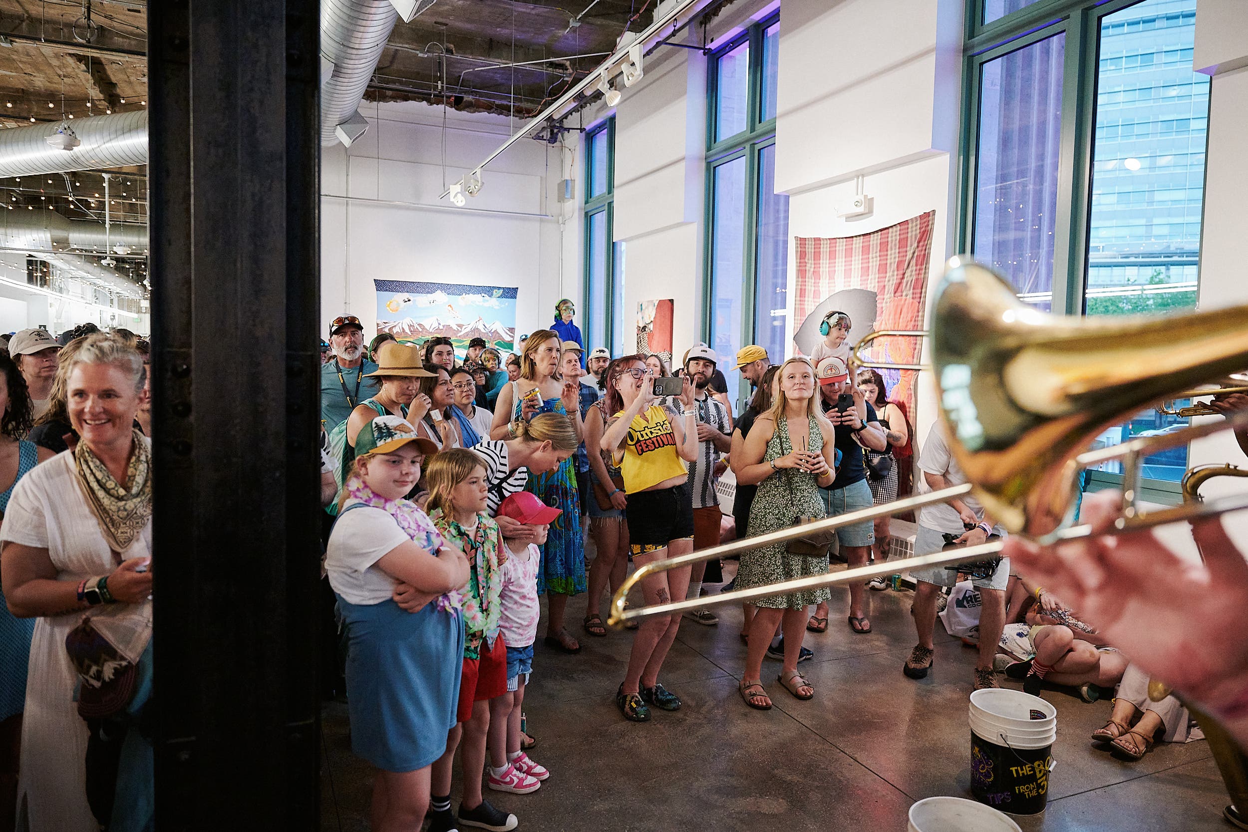 Inside the McNichols Building, one of the performing acts, Brothers of Brass, began playing to the crowds standing shoulder to shoulder in the main hall. Someone texted me a video of the dance party.