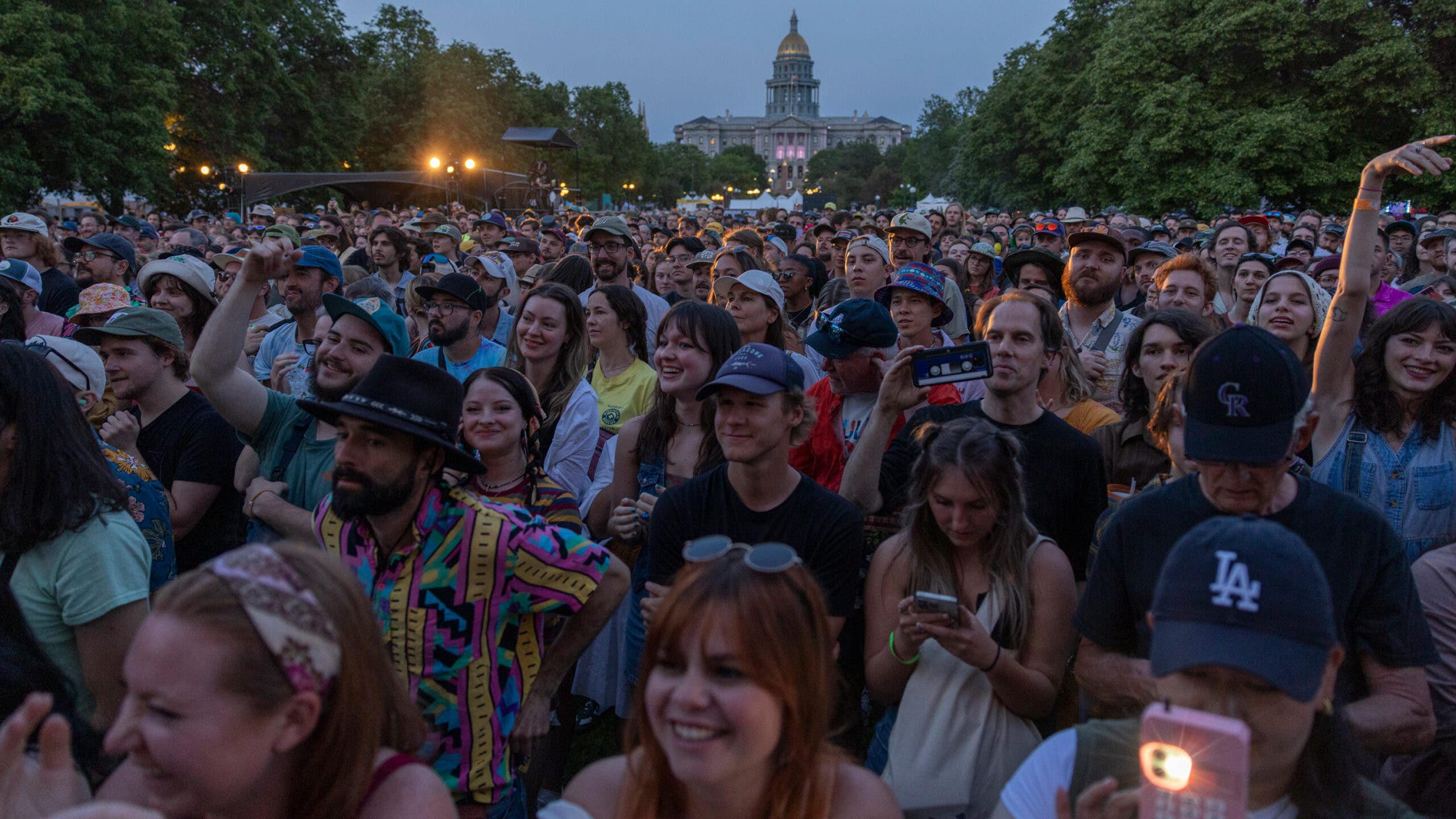 Crowds funneled into the festival grounds Saturday evening just as the sun began to set. Lights illuminated Denver’s City and County building behind the main stage as some warmup music prompted everyone to get on their feet for the next act, Thundercat