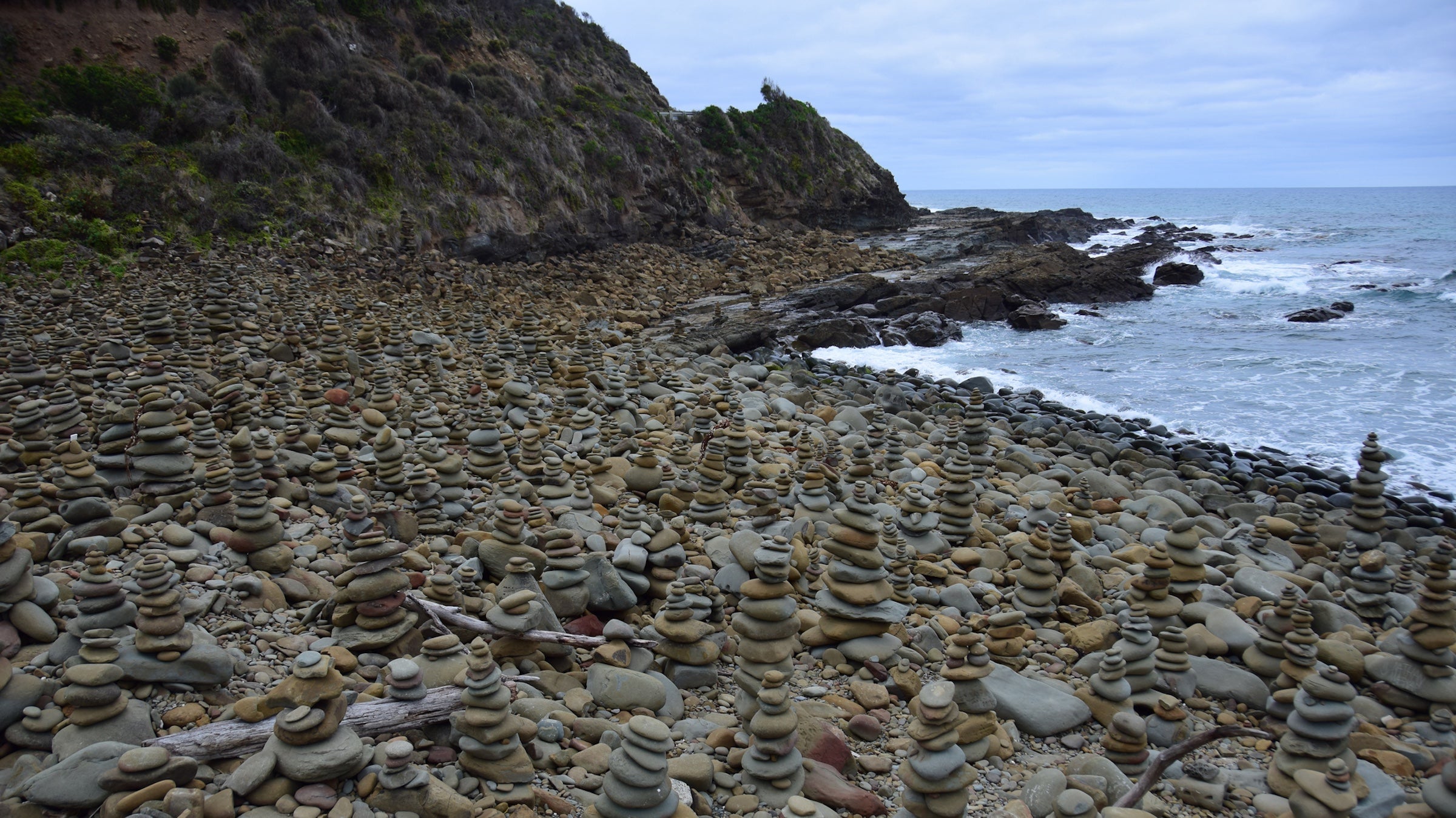 I can see both sides of this. Stumbling upon a cairn or a beautiful arrangement of leaves could bring a little burst of magic to someone’s day, and I’ve often smiled when I come upon similar projects myself. But in wild places that are shared by a lot of people, it’s important to leave nature as untouched as possible. (Obviously if you’re on private land and know the owner, that’s a different story.)