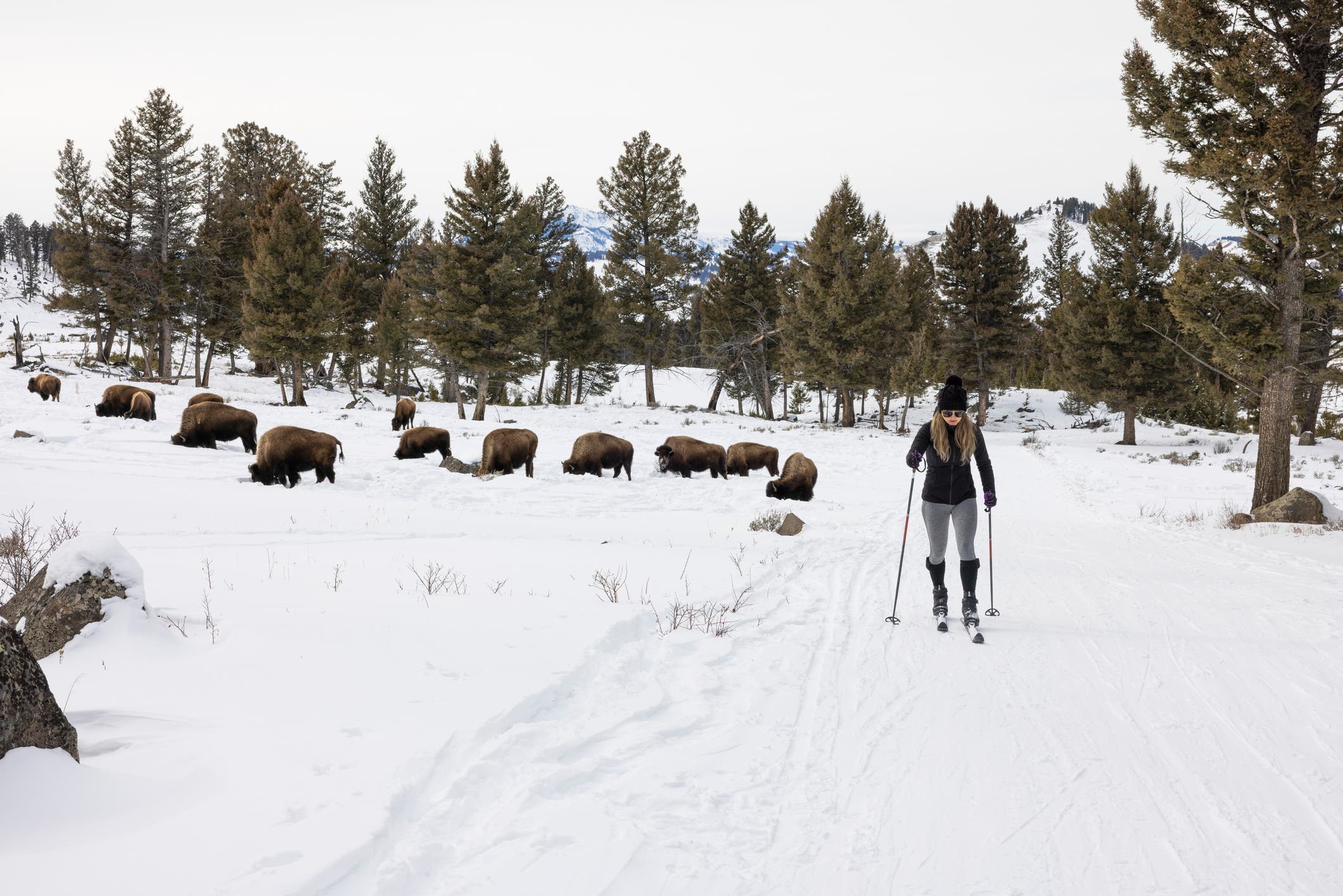 Tour through quiet conifer forests, along the wide Madison River, and across meadows with views of the Madison and Gallatin ranges on this 7.7-mile lollipop loop out of the gateway town of West Yellowstone. From the park boundary, glide through the woods for one mile, then turn right to ski the shorter Upriver Loop. When you return to the junction, continue north to explore the Downriver Loop’s waterfront views.