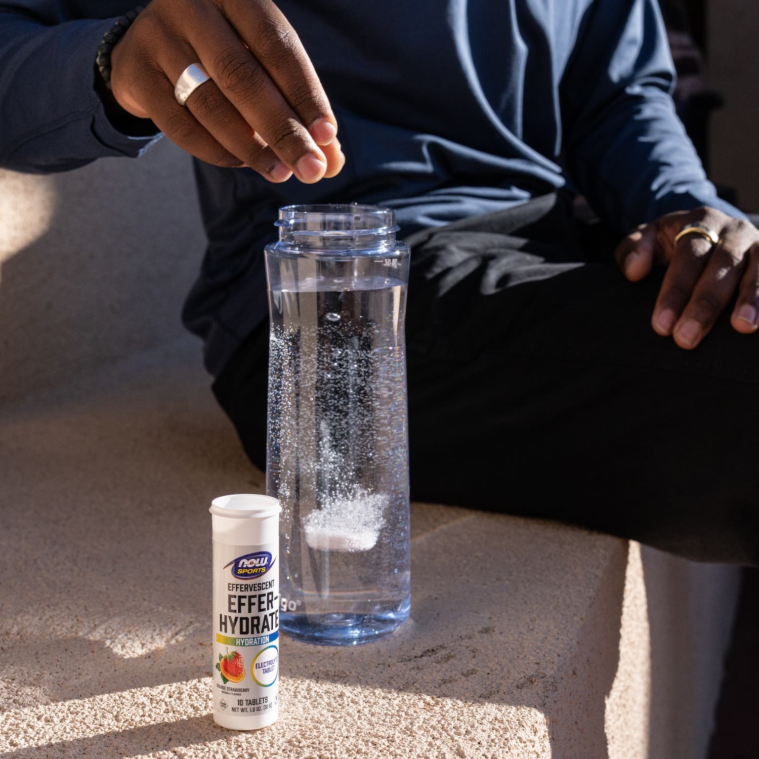 Hydration needs also increase along with the temperature. “As the weather warms up and we get acclimatized to the heat, people tend to sweat more,” Pfaffenbach says. Waleed Suliman, a Brooks Beast 1,500-meter runner with four NCAA titles to his name, makes sure to add electrolytes to his water this time of year. “I need to replenish the lost minerals to stay hydrated and avoid fatigue,” he says. Suliman swears by NOW® Sports Effer-Hydrate Effervescent Tablets (favorite flavor: lemon lime), an easy source of electrolytes from the team’s official sports nutrition partner.