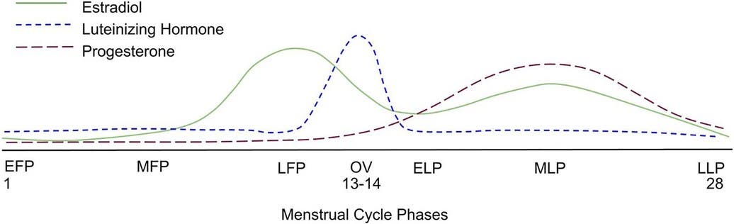 In practice, as the diagram above shows, there can be significant hormonal differences even within a phase. For example, estradiol is low early in the follicular phase (EFP) and peaks in the late follicular phase (LFP). Still, studies on cycle-based training have generally stuck with a simple breakdown: train hard during the follicular phase, then back off during the luteal phase.