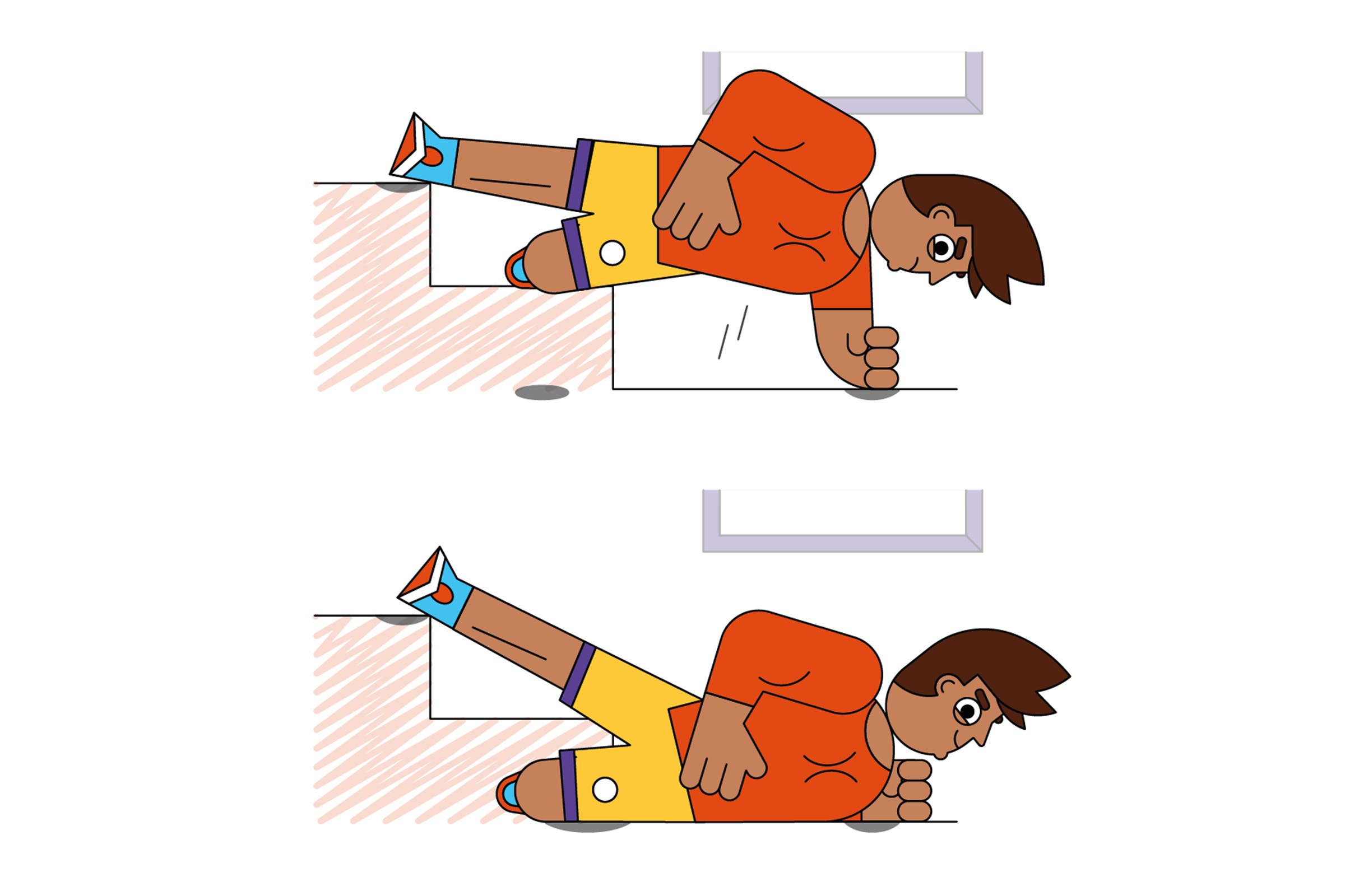 How: Get into a side plank, with one foot atop the first or second step, forearm on the ground beneath you, and your shoulders aligned vertically. (Bend your other leg along the width of the stair.) Tighten your core and squeeze your legs together so your body forms a straight line from torso to feet. Hold that position for a count, then lower your hips to the ground. That’s one rep. Do 10 to 15 reps, switch sides, and repeat.