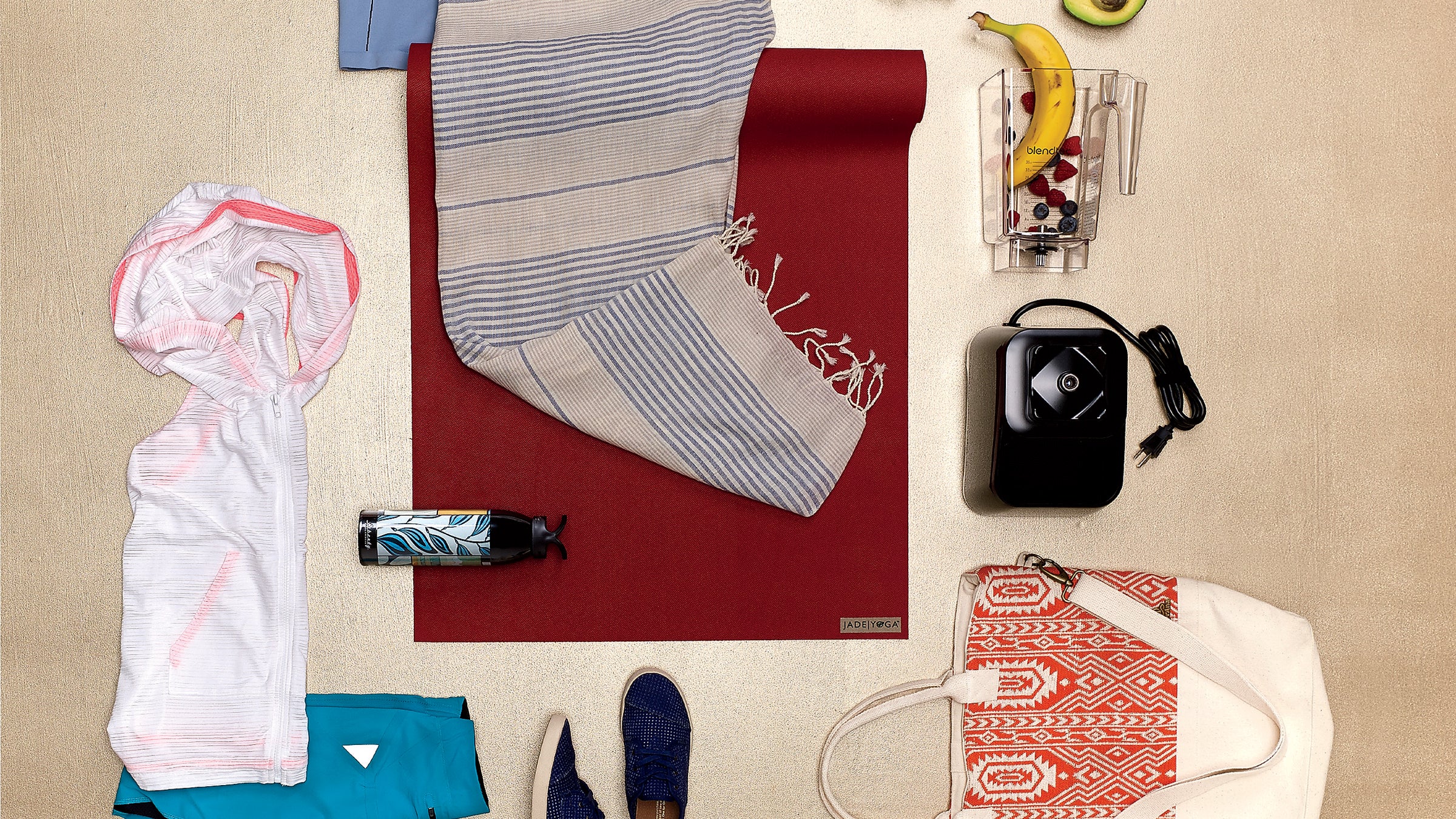 One tote for everything! That’s our strategy for never forgetting (or misplacing) the essentials. The mostly cotton Soleil ($59) fits a mat, water bottle, snack, and change of clothes. prana.com (Michael Karsh)