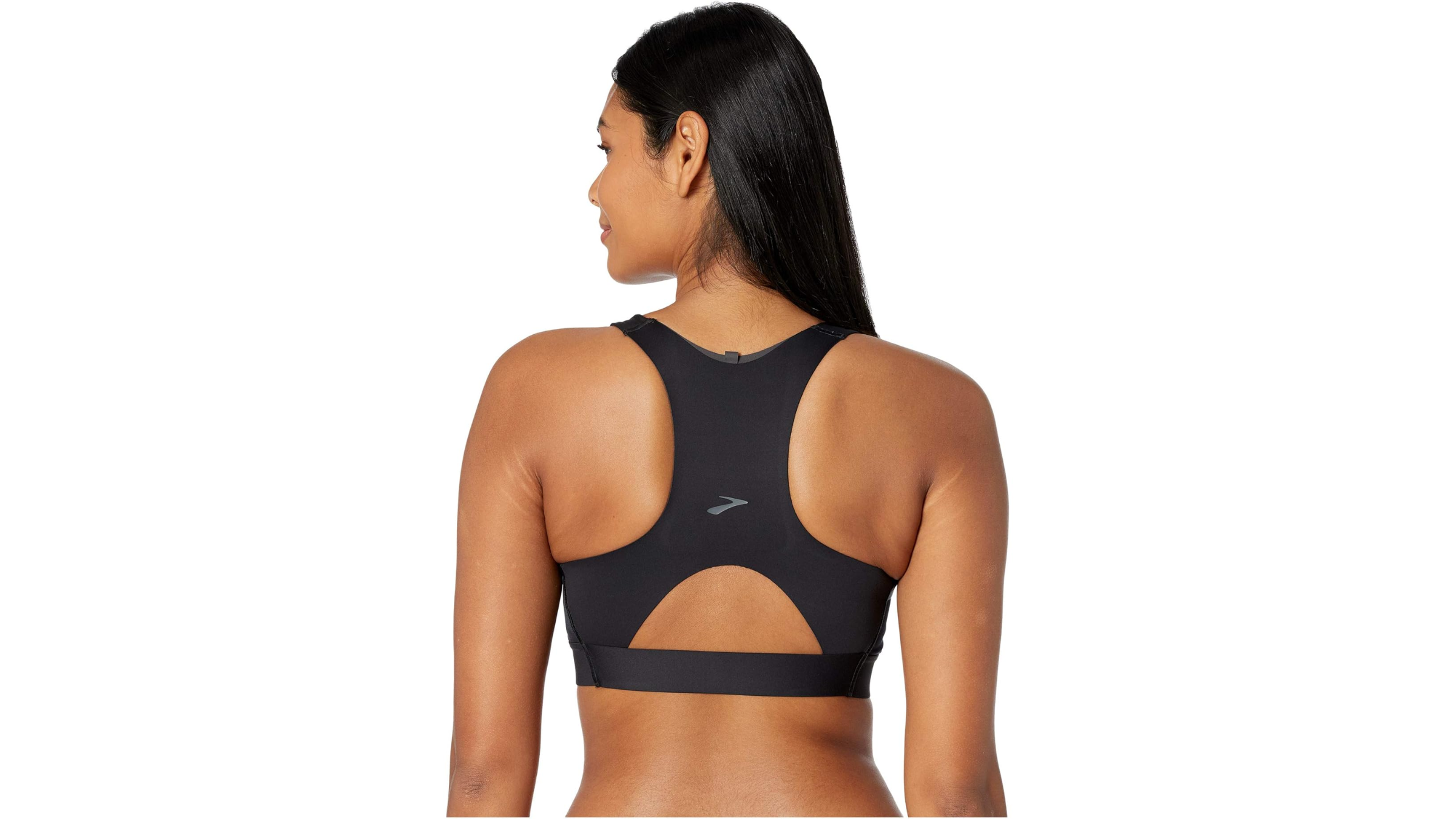 This longer-cut bra can be worn on its own if you’re into that look. The pocket on the upper middle back keeps the phone from bouncing, can be accessed mid-run, and is lined with a waterproof material to keep sweat out. Two stretchy pockets on the sides of this bra let you carry additional items, like a gel or two, making you self-sufficient on a long training run or race day.