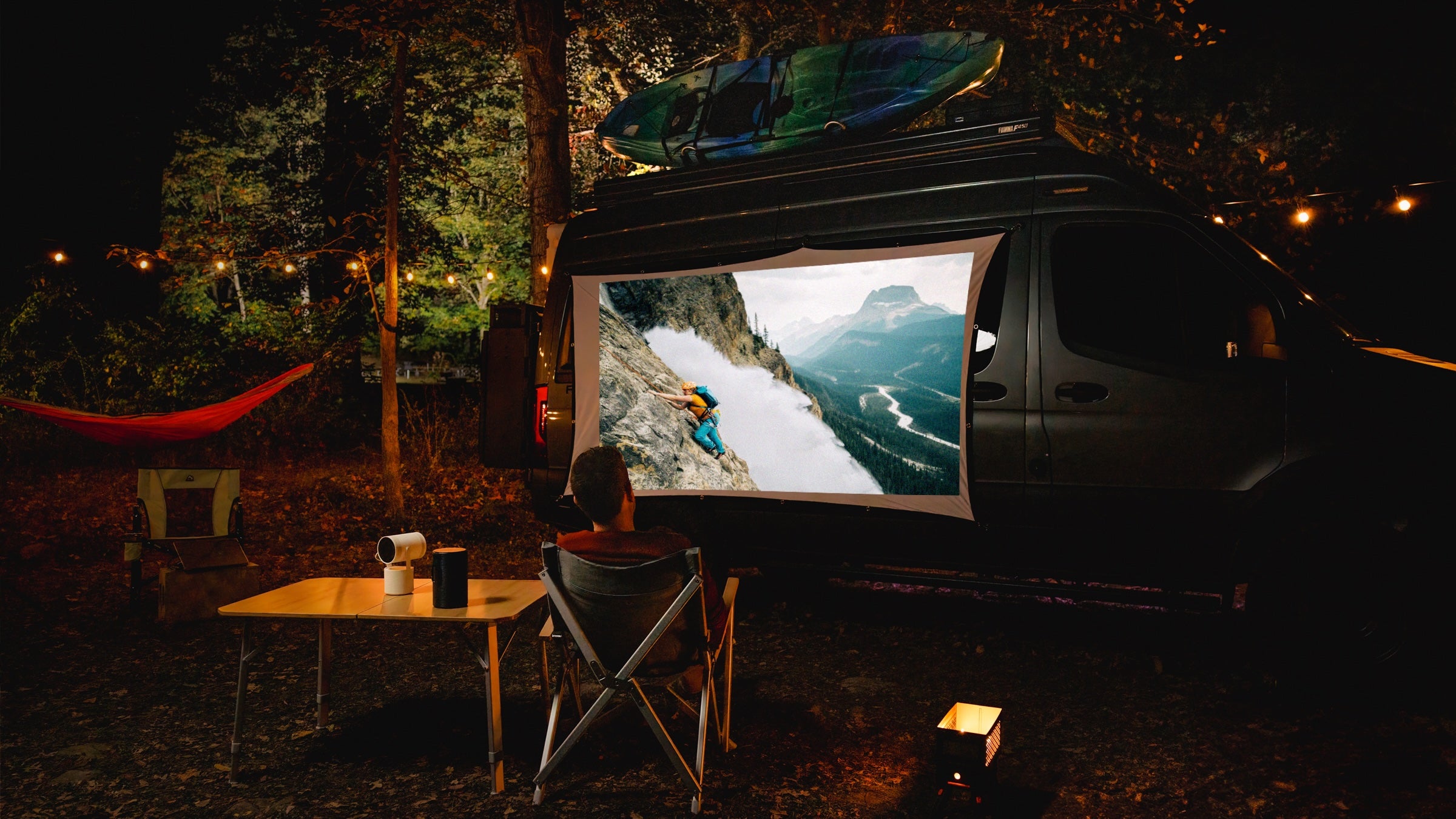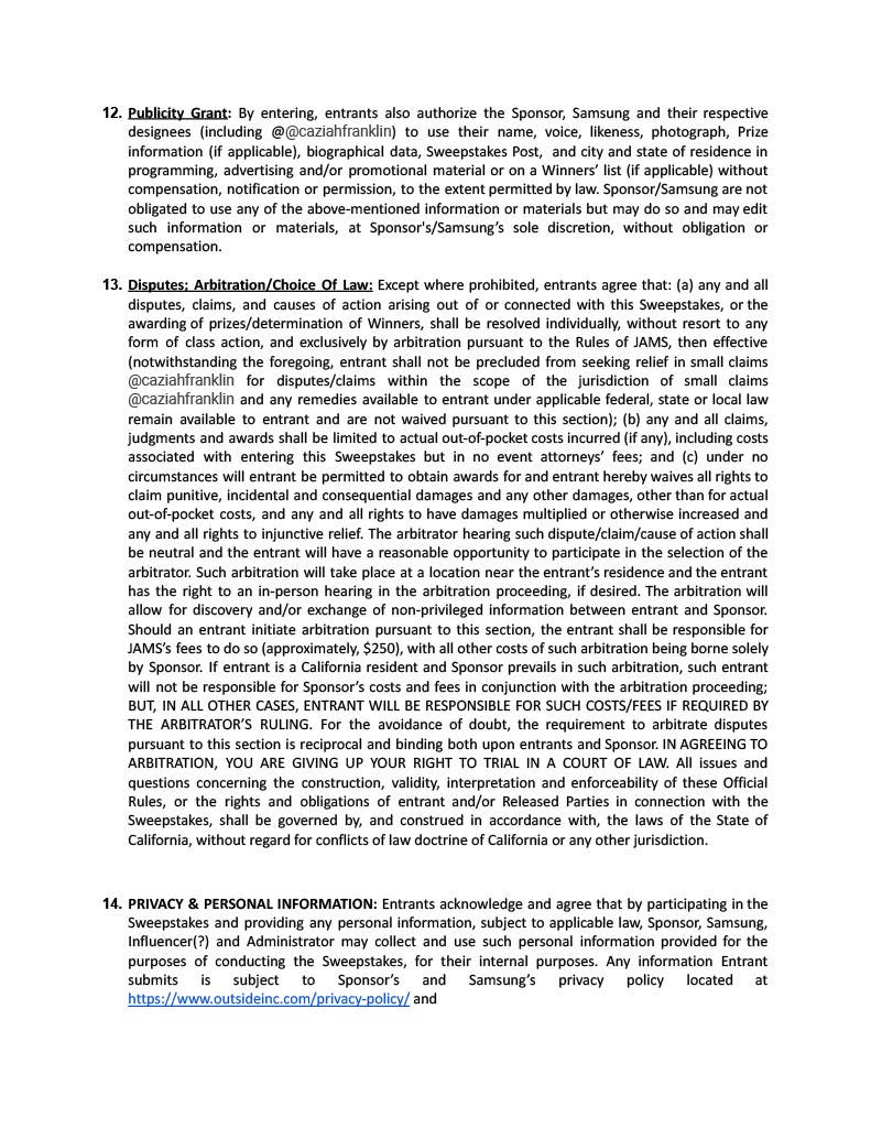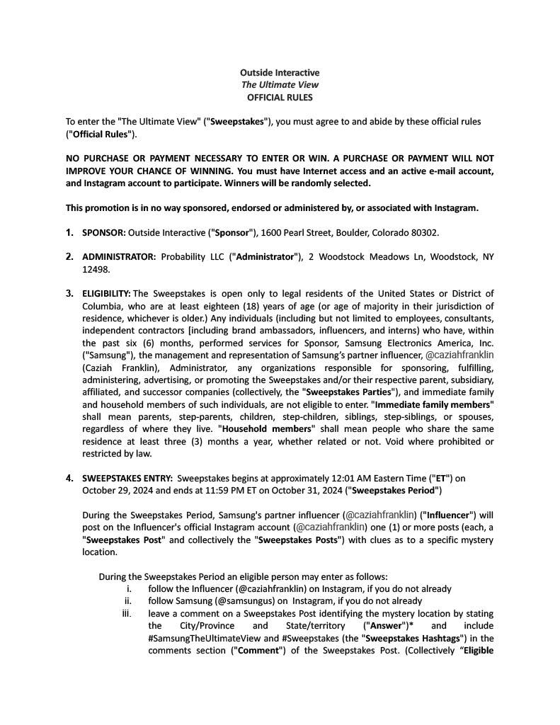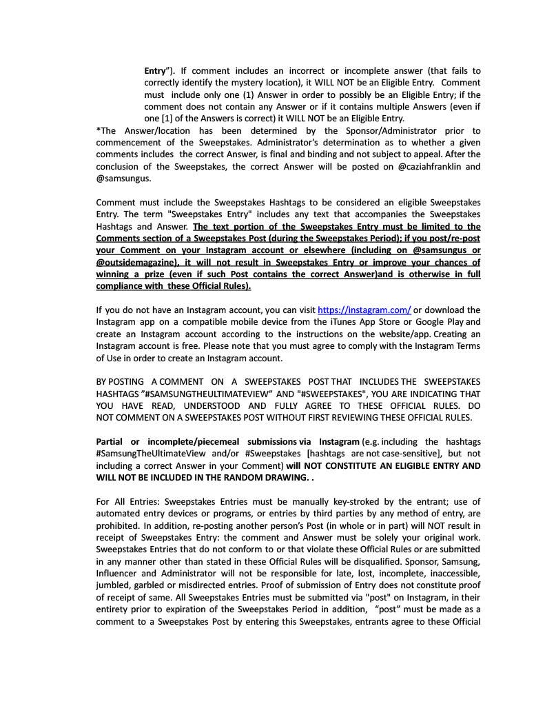 Enter to win a Samsung Freestyle 2nd Gen portable projector: 1) Head to Instagram. 2) Follow @SamsungUS. 3) Follow the Outside Creator posting geo-guessing clues from across the country. 4) Comment with a possible answer location on a sweepstakes post