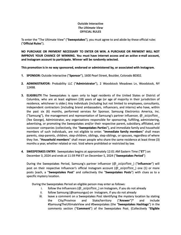 Please see the second phase of The Ultimate View Sweepstakes Official Rules below:Please see the first phase of The Ultimate View Sweepstakes Official Rules below: