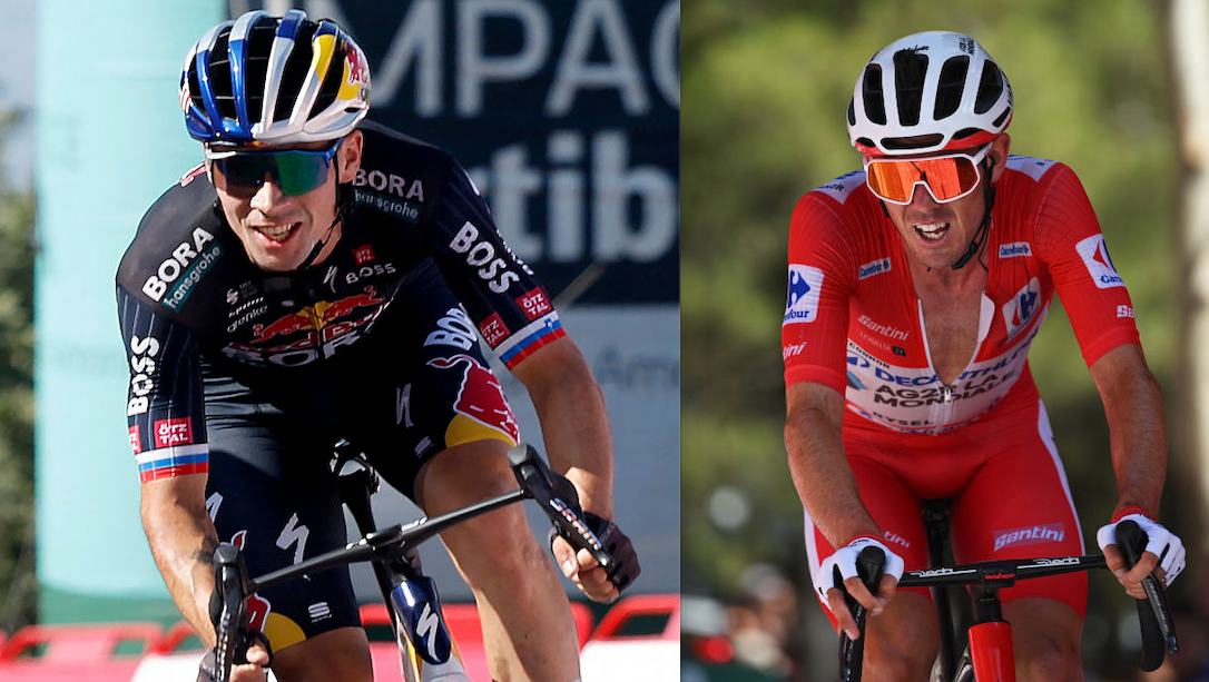Ben O’Connor (in red) is attempting to hold off Primoz Roglic (left) at the Vuelta (Photo: Getty Images)