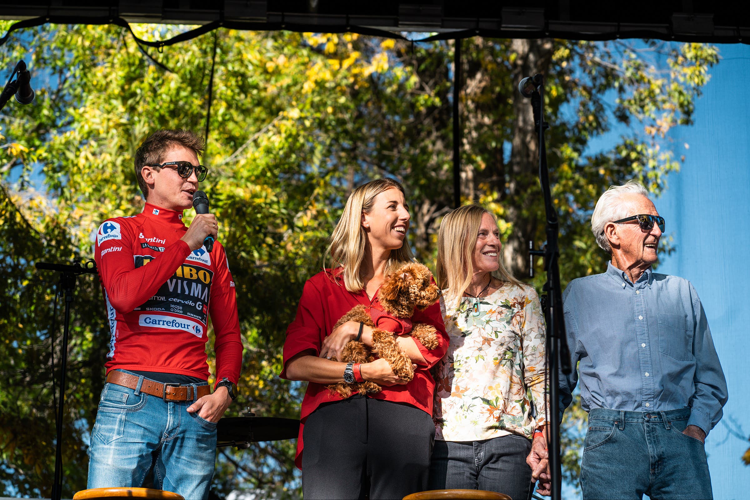 Dolph smiles and Sabina looks moved. Soon the midmorning sun beams through the windows, and it’s time to get down to the serious stuff, to address the Vuelta and a bizarre drama. A bitter inter-squad rivalry at Jumbo-Visma nearly tore the team apart in the final few stages. Sepp found himself in a wholly unprecedented situation: a domestique leading the race and having to fend off his two team leaders, Roglic and Vingegaard. Media intrigue ratcheted up the pressure for one of the three to back down. Sepp refused. He fought on and chased after his teammates on the steepest mountains, and in doing so won the affection of cycling fans across the world.