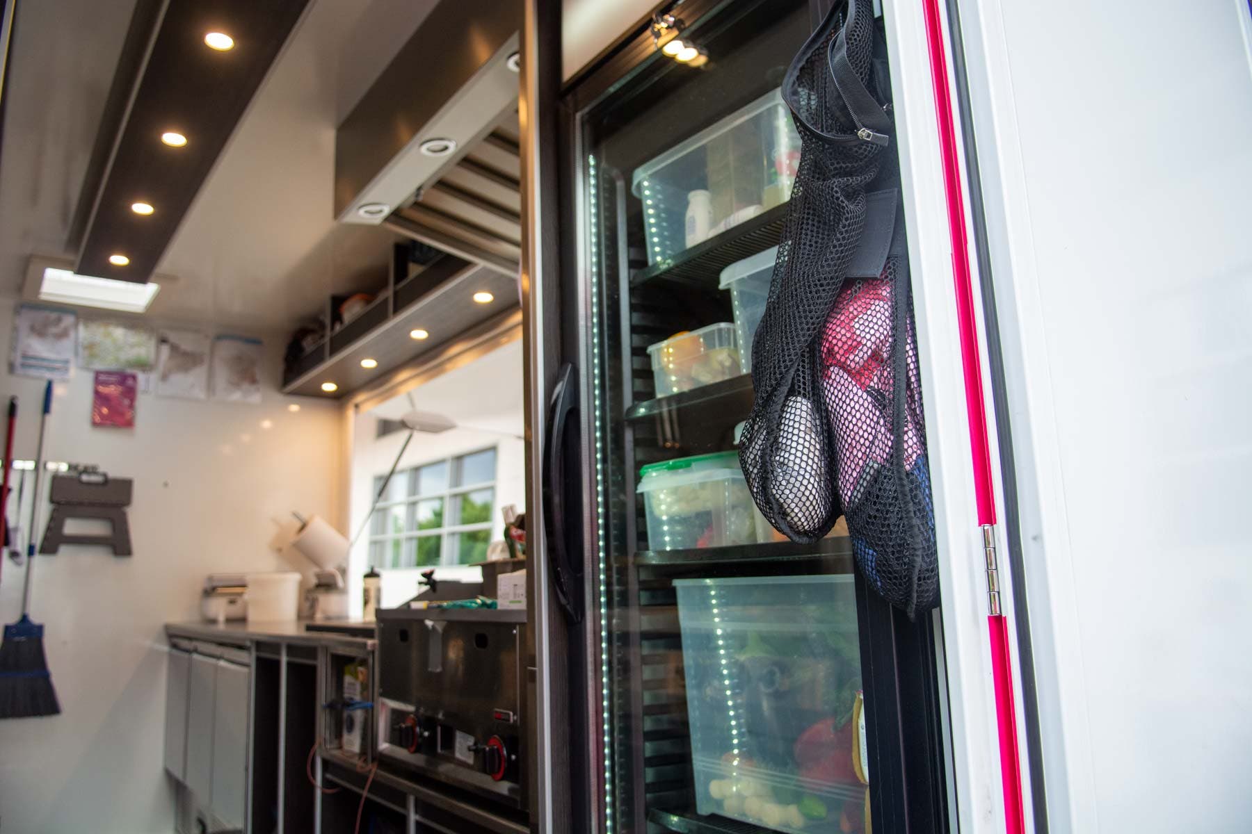 Cooking out of a food truck means Blandy is guaranteed a space that’s clean, hygienic, and away from the bustle of a busy hotel service. His workspace is a purpose-built 225-square-foot space that would fit into the tech-heavy kitchens of Michelin-star chefs five-times over. The Britain-born cook serves multicolor salads, grilled meats, and sweet treats from a six-ring gas range, box-size oven, and store cupboards that are packed to endure journeys over hors-categorie climbs and switchback descents.