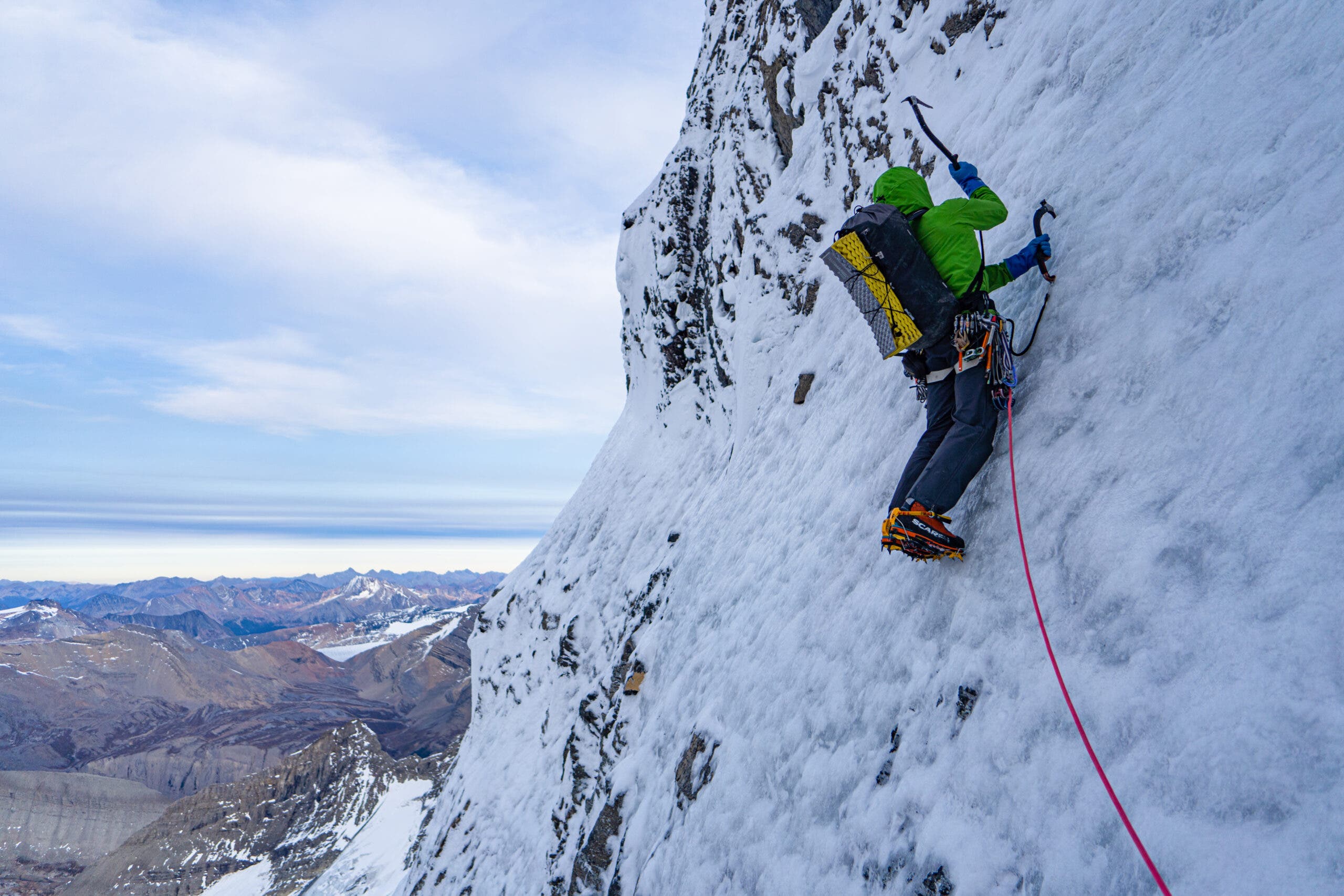 Looking back on the ascent, Berman told Climbing that “what stands out the most is how wild and out-there the adventure was—like climbing the final ice pitches to the summit through a tube of rime gargoyles leaning every which way.”