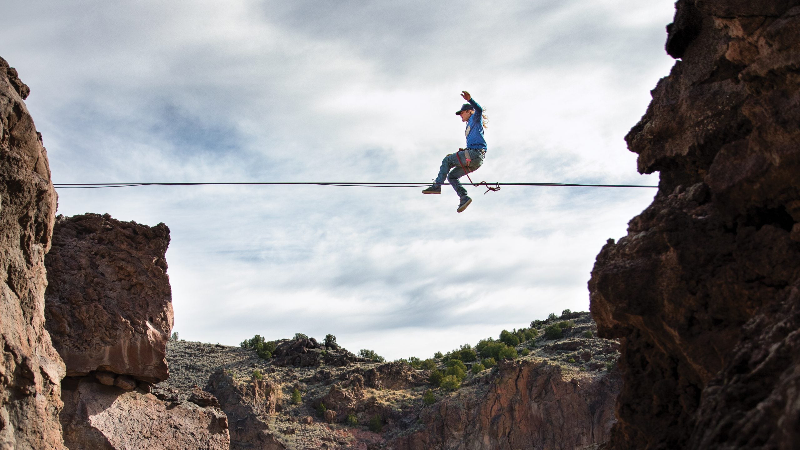 The night after Wilson and crew camped at the remote canyon, they spent a few days outside of Taos, New Mexico, high above the banks of the Rio Grande. Wilson had planned to skydive out of a hot-air balloon, but the weather didn’t cooperate, so they explored the area on foot and, of course, slacklined in camp. “It was great—all we had to do was think about the adventure,” he says, which for Wilson means getting airborne one way or another. As he likes to say: “We weren’t meant to only hang out on our two feet on solid ground.”