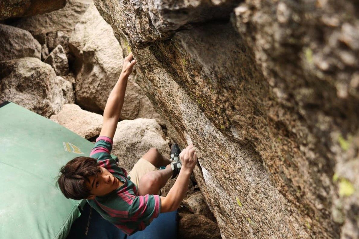 Given the boy’s age and size—he stood just 4-foot-11—I might not have taken note. But the kid was working the problem alongside veteran climbers Jimmy Webb and Daniel Woods, who were also struggling to stick it. Something cool was happening. I was watching 12-year-old Beckett Hsin crush it alongside adults.