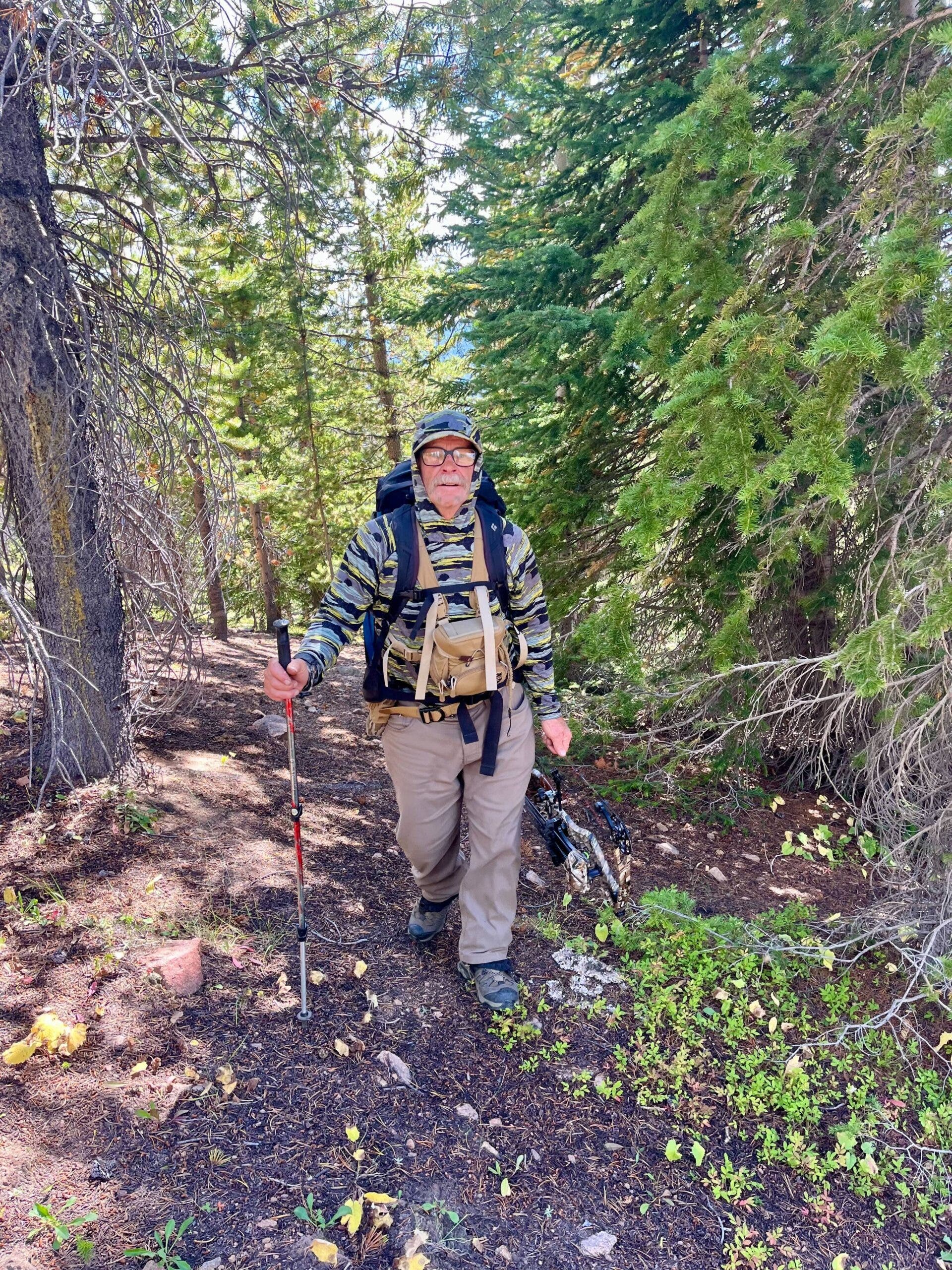 It was early September 2024, the second day of Colorado’s bow season. Carl, a 65-year-old house painter from Vail, held elk and deer tags good for both sexes but so far had not seen any animals. The sun’s heat felt like it does in July. Carl had dark, greasy smudges on his cheeks to avoid detection by his targets, and was dressed in a camouflage long-sleeve hoodie and beige pants. He would have been nearly impossible to spot if not for his 75-liter azure backpack, which could only be camouflaged in an ocean.