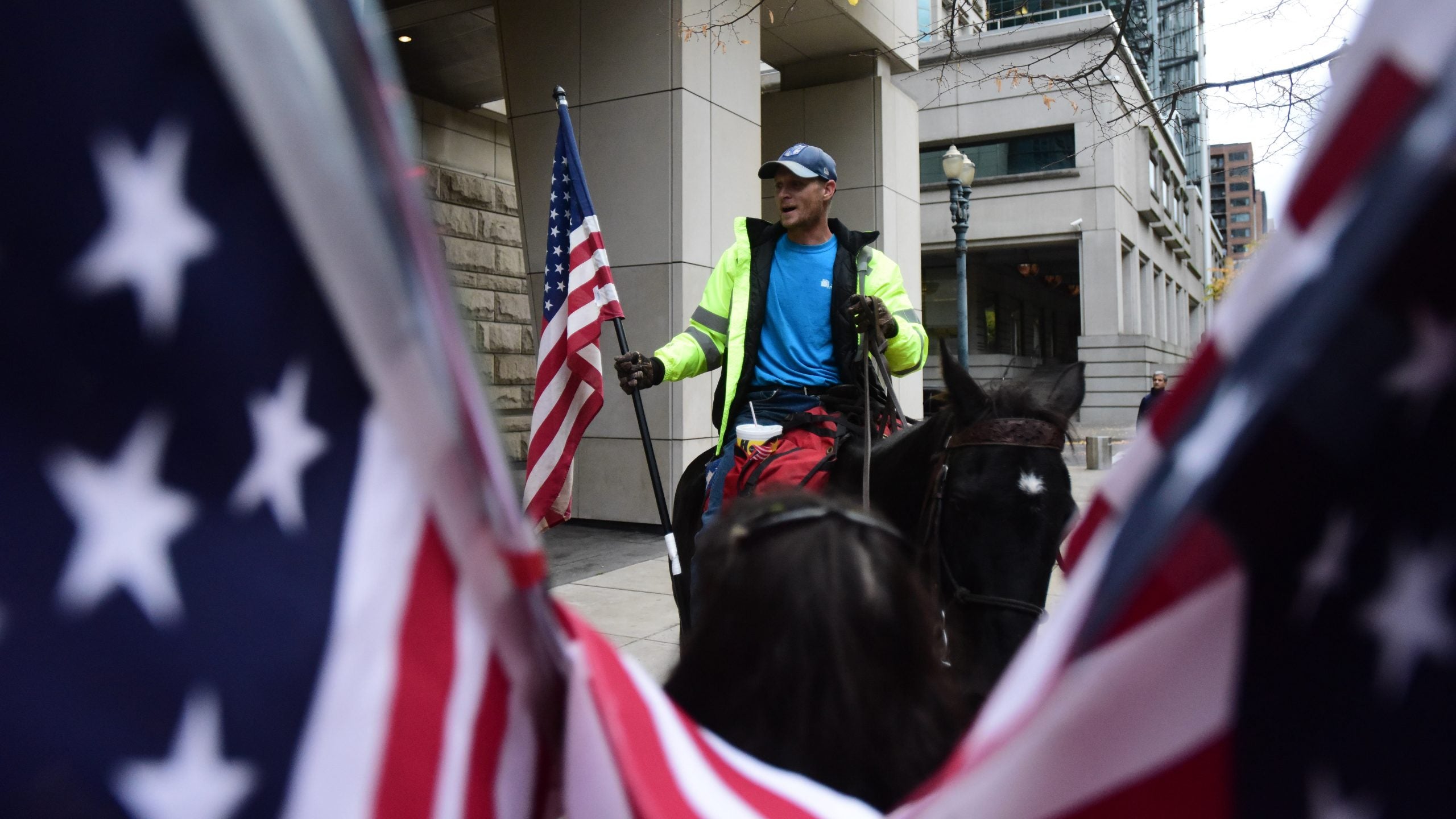 Late Thursday night, supporters outside the courthouse raged on, waiting for David Fry (whom we wrote about earlier this month) to be freed from jail. They danced in the rain with American flags, and chanted, “Not guilty!” Defense attorneys ambled over from an after-party and hugged those who stayed. One attorney, Matthew Schindler, said the prosecution simply made “tactical errors.”