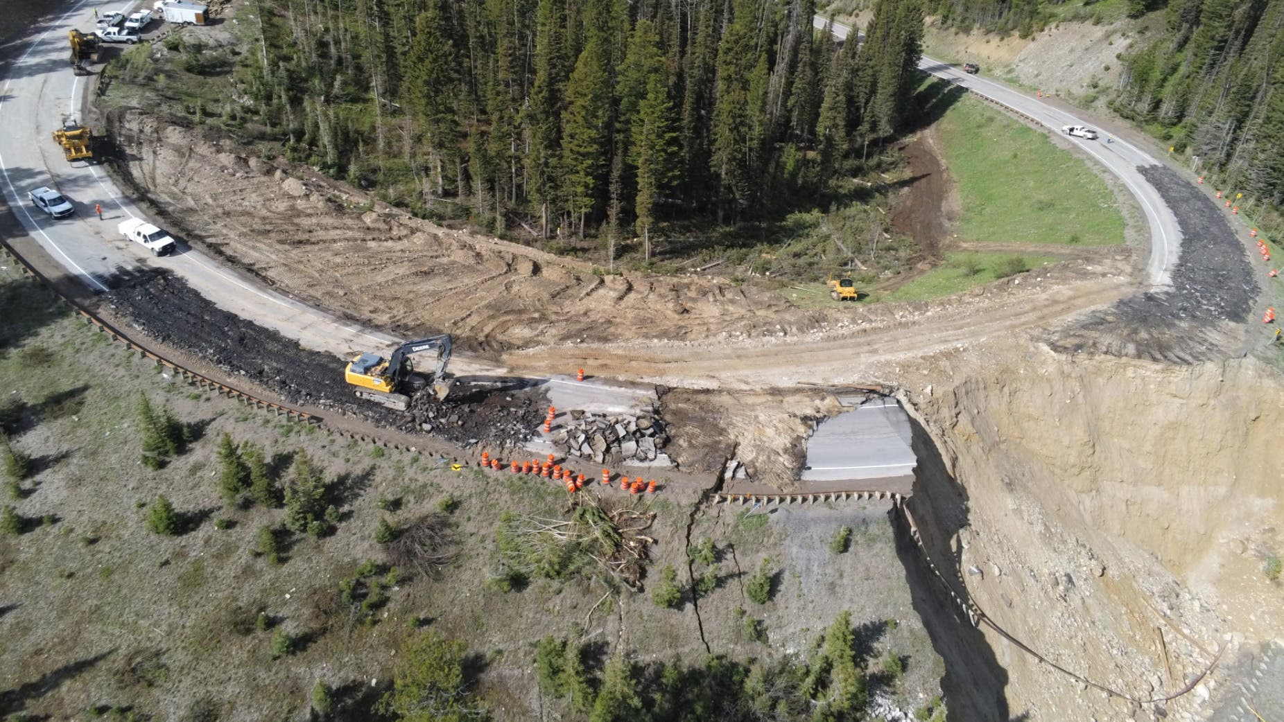 “We understand this highway is a lifeline for commuters, deliveries, medical care access and tourism, especially with limited alternatives and the summer season upon us,” WYDOT wrote on Facebook. “WYDOT engineers, surveyors and geologists mobilized quickly to try to maintain highway viability as long as possible, but catastrophic failure could not be avoided.