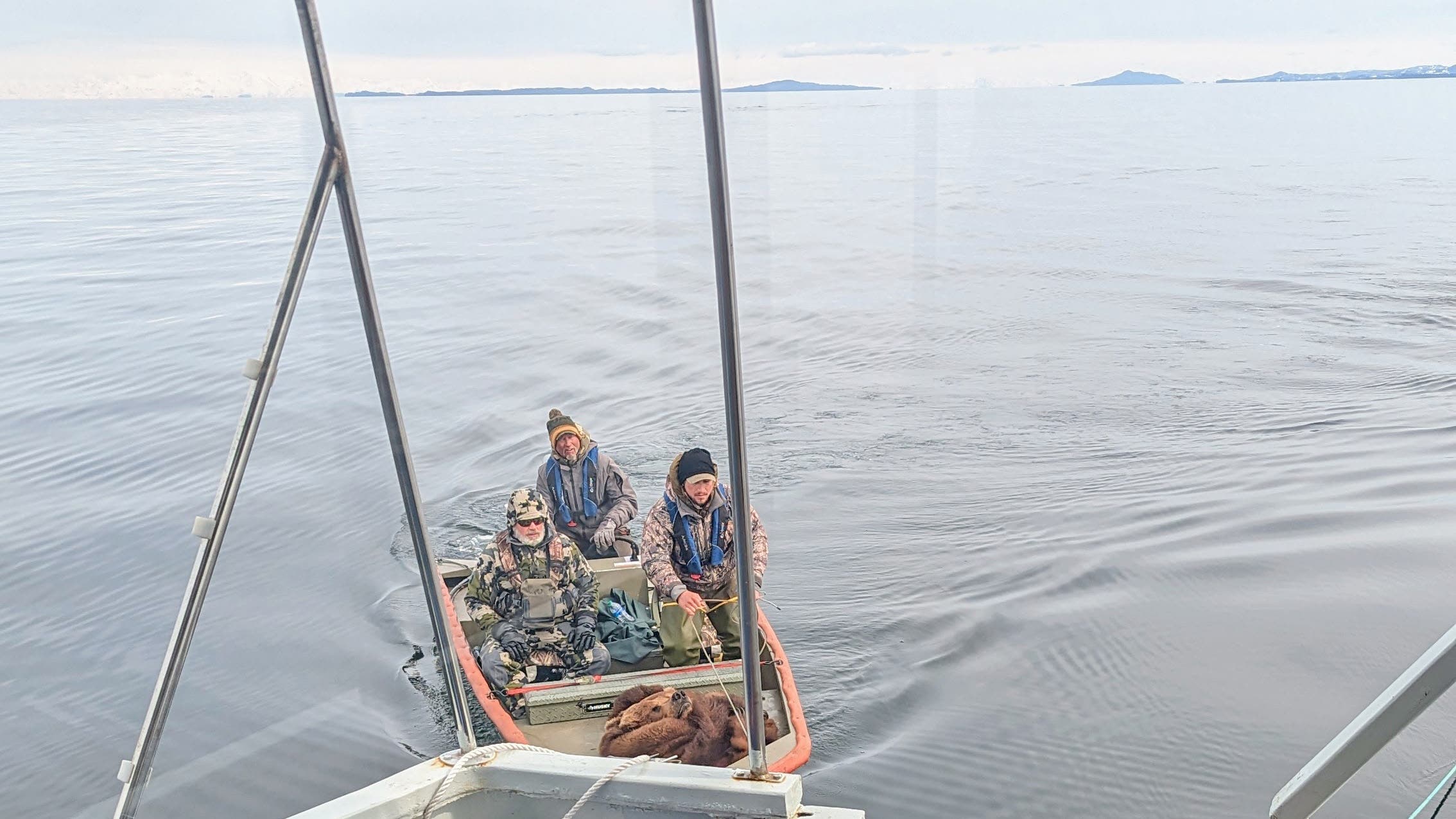 Hunts are really hard to photograph. Animals are typically first spotted at great distance through binoculars and spotting scopes, and then approached as stealthily as possible. Before spotting the bear I eventually shot, we only saw two others. While stalking the first, we lost sight of him at several hundred yards—way beyond photo distance for anyone but a well-equipped professional photographer—and then didn’t catch sight of him again until he winded us at 30 yards, and charged right past us at close range. I wasn’t thinking about pulling my smartphone out of my pocket during that instant. Nor did the thought occur to me while I was jumping out of a skiff in heavy surf, climbing a sharp, slippery rock, and aiming my rifle at the bear I eventually shot. And even if I had taken the time to snap a photo, the bear would have looked like nothing but a black spec at that distance. But I still wanted to take home memories of the hunt, so I took a picture with the bear once he was down.