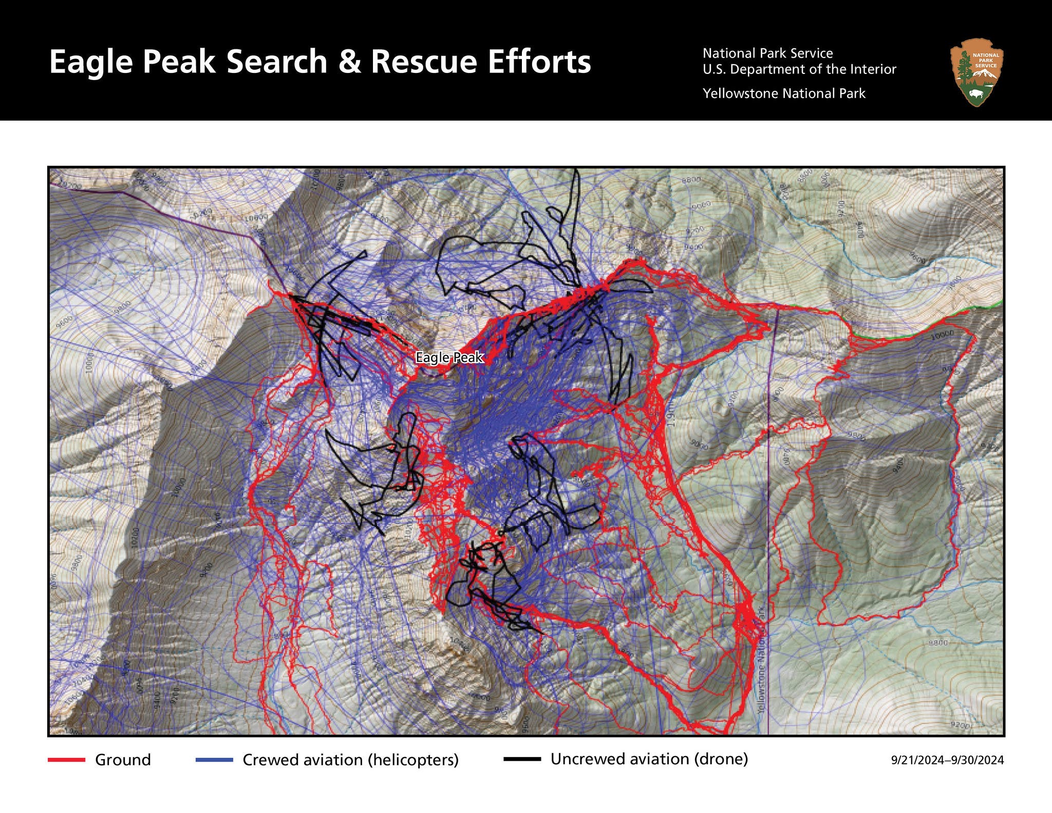 More than 100 people participated in the search organized by crews from Yellowstone and Grand Teton National Parks, and the effort lasted 11 days. On October 2, Yellowstone shifted the effort from a rescue to a recovery.