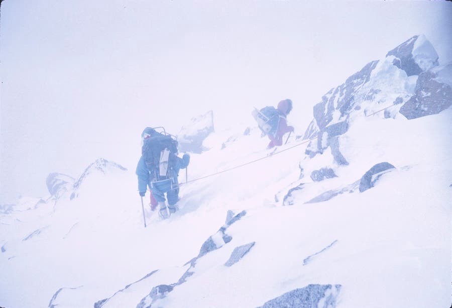 Furthermore, Randall emphasizes that this “less technical” line was anything but easy—especially back in the day, with heavy loads of unwieldy equipment. “The route still presented hidden crevasses big enough to swallow a bus, icefall, avalanches, and steep ridges that dropped off thousands of feet,” Randall says.