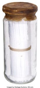 Perhaps the most coveted object for Fenn devotees is a wax-sealed glass jar that purportedly contains his 20,000-word autobiography. As of Tuesday afternoon, it was going for $13,000.