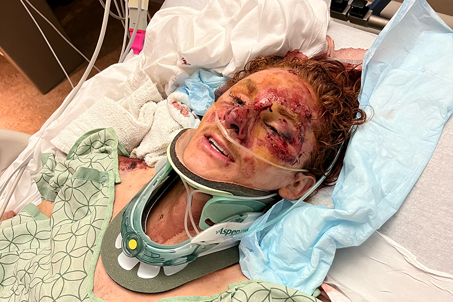 “I was the first to arrive and was immediately taken aback by his condition and afraid to move him,” Daniels says. “Another woman [Megan Ross, an EMT] arrived shortly after, and we managed to prop his head up slightly as he regained consciousness and started working on stopping the bleeding.”