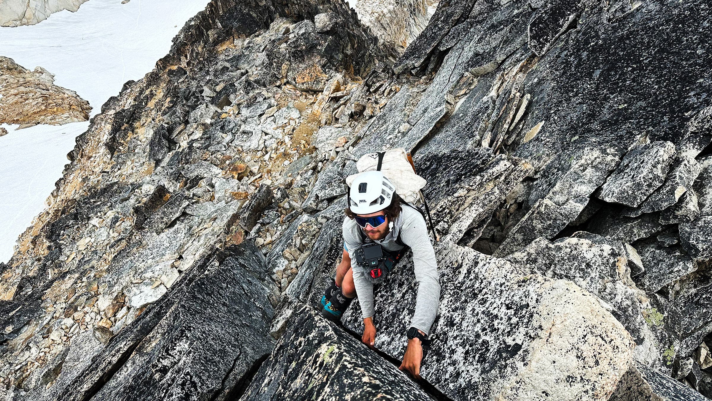 The two launched their adventure on May 5, when there was still plenty of snow in the Enchantments. The first peaks they targeted were Cashmere Mountain, Cannon Mountain, Enchantment Peak, McClellan Peak, Little Annapurna, Dragontail Peak, and Colchuk Peak. To Hashimoto’s surprise, Ernest-Beck not only held his own—he roared up the mountains.