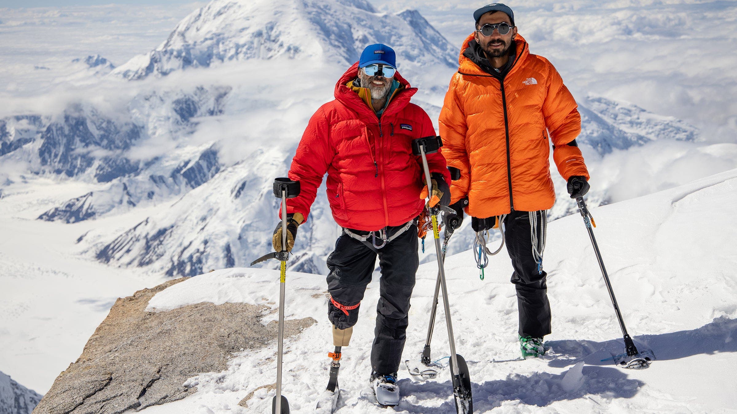 While plenty of adaptive athletes have summited Denali, Vasu Sojitra and Pete McAfee are pretty certain they’re the first to ski it. (There is no definitive record keeper for adaptive-athlete mountaineering feats.) The two men, who are both amputees, summited and skied the 20,310-foot Alaskan peak on June 20. Their six-man team, which included mountaineers and filmmakers Erich Roepke, Stein Retzlaff, Ted Hesser, and Ben Farrar, was comprised of nearly all Denali first-timers—only Roepke had made the climb before.