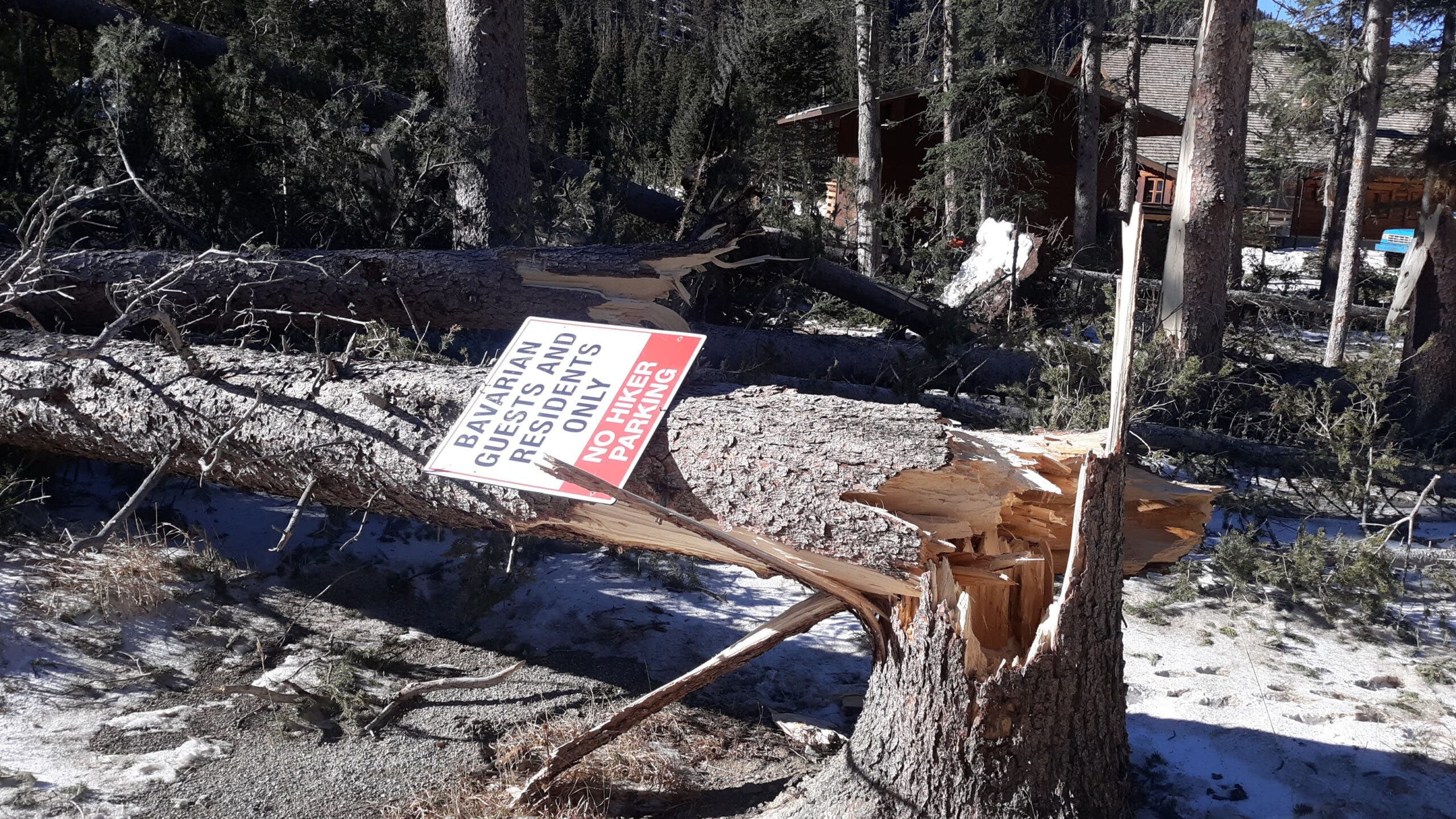 “The entire forest past the ski resort looked like it had been laid flat,” he said. “The trees looked like matchsticks, and many of the trees had blown down on the main road.”