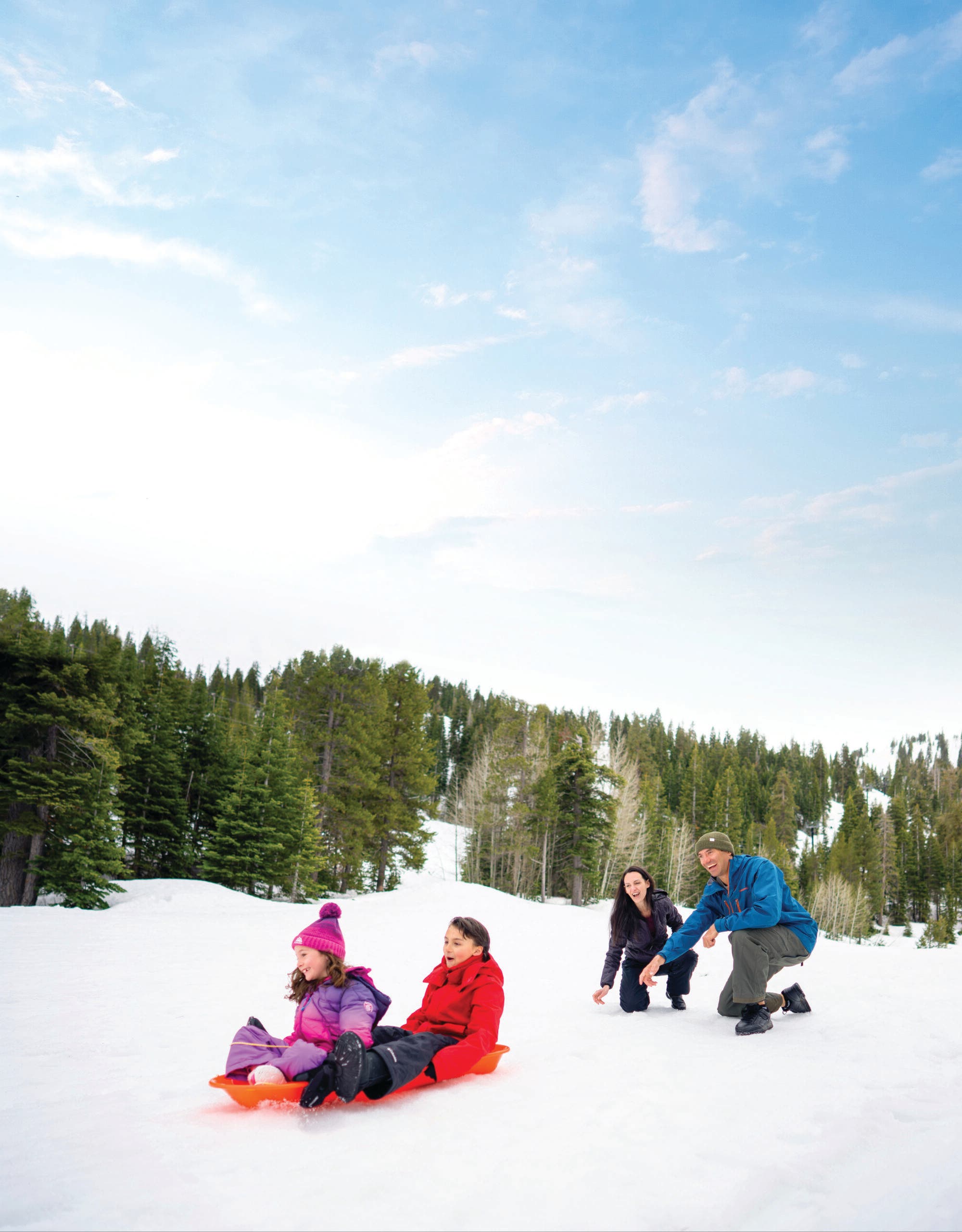 Ask any kid ever and you’ll hear the same thing: there is no greater fun than a perfectly curated sledding hill! Fortunately, North Lake Tahoe has a number of established sledding hot spots like Granlibakken Tahoe and Tahoe City Winter Sports Park that carefully groom hills and offer sled rentals for the entire family. If you opt to spend the day zooming downhill, please mind your manners and follow the “slediquette” guidelines to ensure we all do our part to take care of the planet.