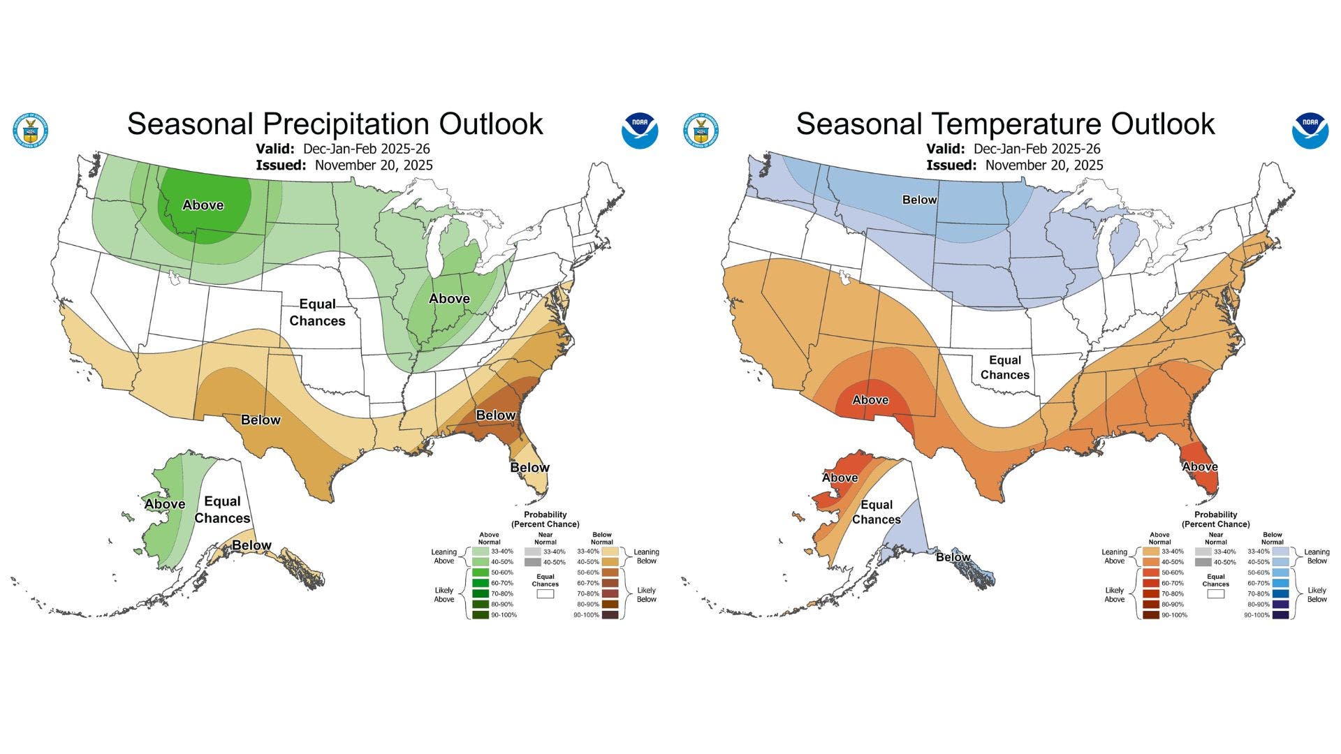 “What we can do, with less certainty, is estimate the average conditions for the winter season, and those predictions show that temperatures in the northern Rockies and central Plains are expected to be lower than average with higher than usual precipitation amounts,” said Cade.