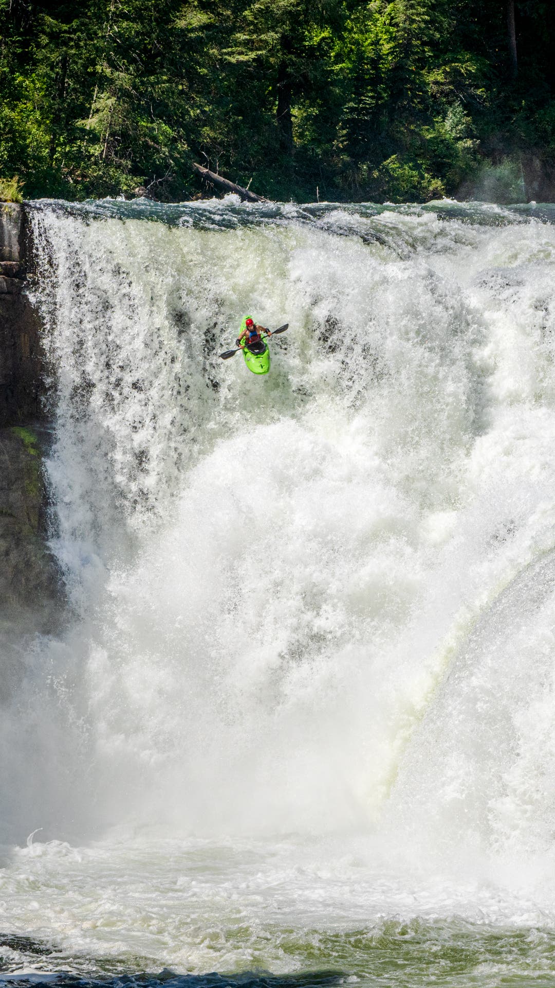 “The biggest part was me getting into the headspace of knowing what I was getting myself into,” Mueller says. “I remember coming up to the falls, scouting the horizon line, and then just going for it and committing as hard as possible. If you don’t commit over it, you risk serious injury.”