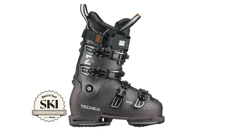 This boot not only received perfect 5.0 scores in three of our on-snow performance metrics (dynamic balance, quickness and steering, and edge power), but it also impressed testers with its supreme comfort. How is it that the Mach 1 MV can be so comfy and yet ski with race-worthy power and quickness? For one, the boot’s stance angles have been refined over several years to hit that Goldilocks sweet spot: not too flexed, not too upright, and dead-flat edge-to-edge underfoot. The Mach 1 boots also use a polyurethane plastic with a thickness adjusted to enhance vibration damping and stability. As for comfort, credit the shell’s anatomical shape, which seamlessly contours the foot, and its thoughtfully designed liner. The padded liner is pre-molded to cup the ankles, eliminating hot spots. See how it stacks up against the other women’s alpine boots we tested.