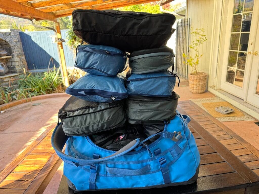 I then crammed tons of stuff in the cubes to test their packability. I packed every cube in this test 15 times with laundry in my house and fake-packed my Sea to Summit 65-Liter Duffel, which has been my go-to carry-on since I dragged it behind a car for a duffel test in 2016. The consistent repeatability of this experiment allowed me to zero in on the nuances of each cube and sniff out the smartest design details.