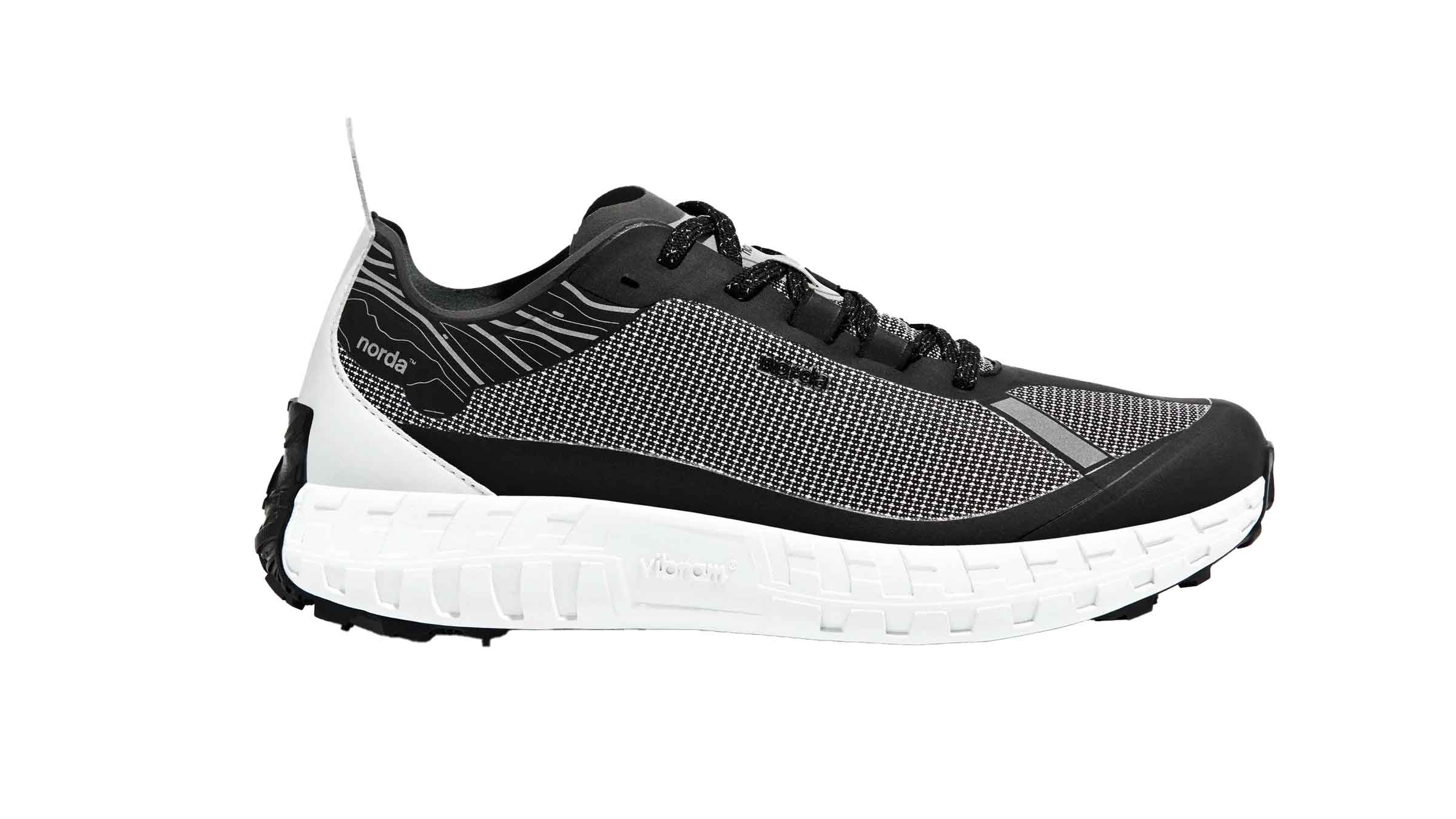 The drop of 5 millimeters (26mm heel; 21mm forefoot) was perfect for me. A super-light Vibram Litebase sole and Megagrip outsole complete the ensemble; its angular 5-millimeter lugs dug into mud and loose dirt with aplomb. Norda’s burly choice of materials surely offset the lofty price—they may be 30 percent more expensive than my other pairs of trainers, but I expect them to last at least 1.5 times as long.