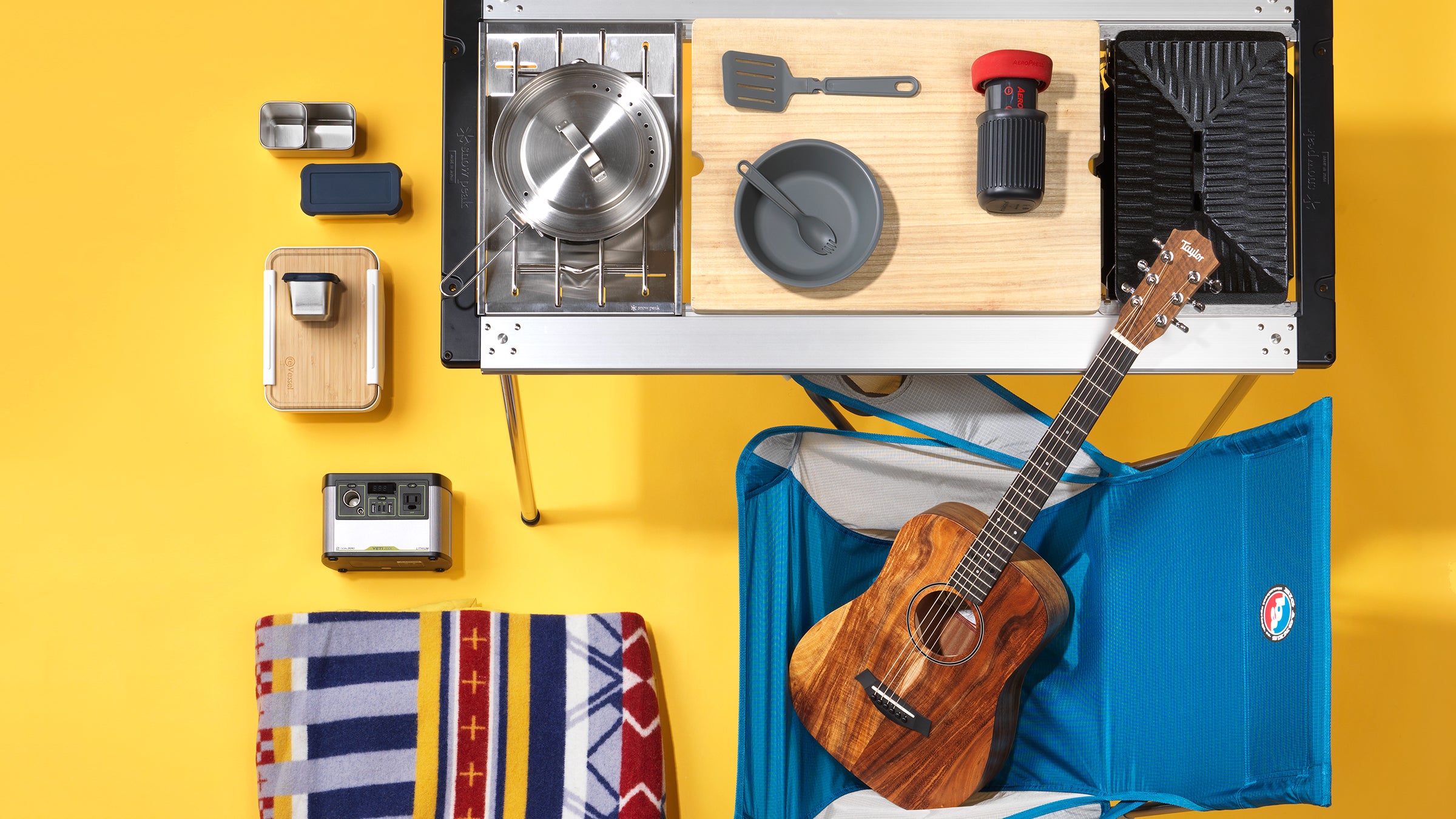 Snow Peak’s modular system lets you piece together the galley of your dreams. Choose a table length and height, then kit it out with an array of accessories. We like the single-burner stove, bamboo counter, and grill. (Price varies with configuration.)